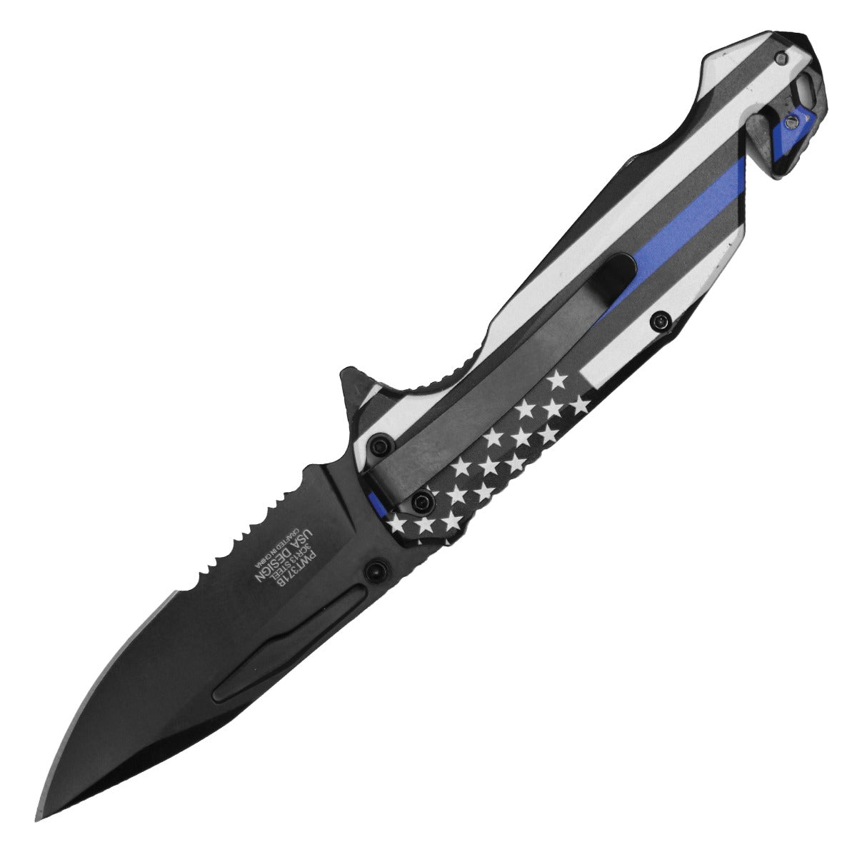 Wartech - 8.25" Thin Blue Line | Spring Assisted Pocket Knife