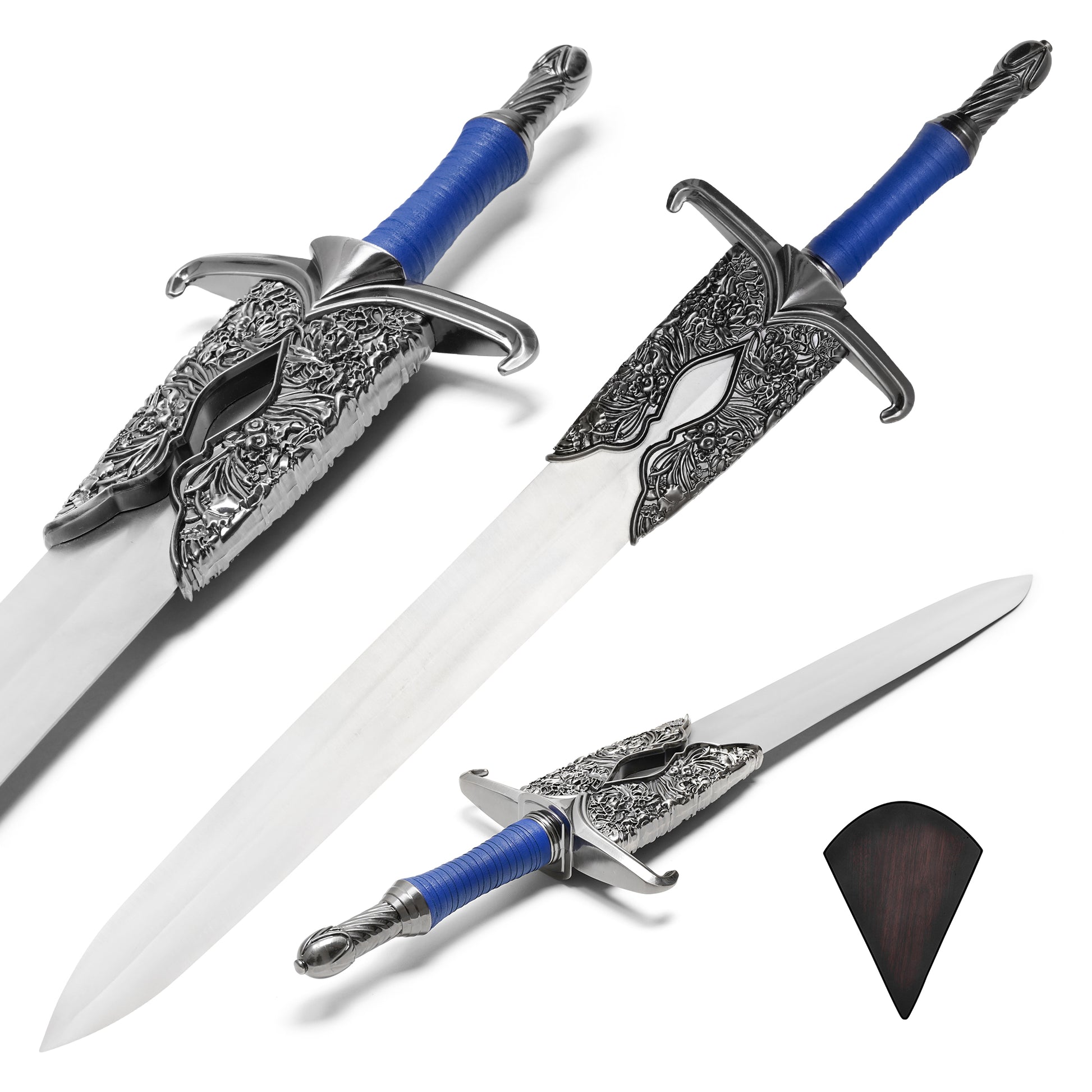 Wield the blade of the legendary Roshan from Assassin’s Creed Mirage with this stunning replica. Forged from hand-made carbon steel, this Roshan’s Sword boasts a finely detailed 19.5” blade, making it a must-have for cosplayers, collectors, and Assassin’s Creed fans alike. Inspired by the weapon used by Roshan, the skilled mentor of Basim, this sword is more than just a piece of history—it’s a work of art. With its beautifully crafted 15.75” decorative handle wrapped in blue, and intricate carvings, it is designed to be an eye-catching centerpiece. Whether for cosplay, a collection, or display, this replica comes with a dark wood plaque, allowing you to showcase the sword in all its glory, bringing the iconic universe of Assassin’s Creed into your space.