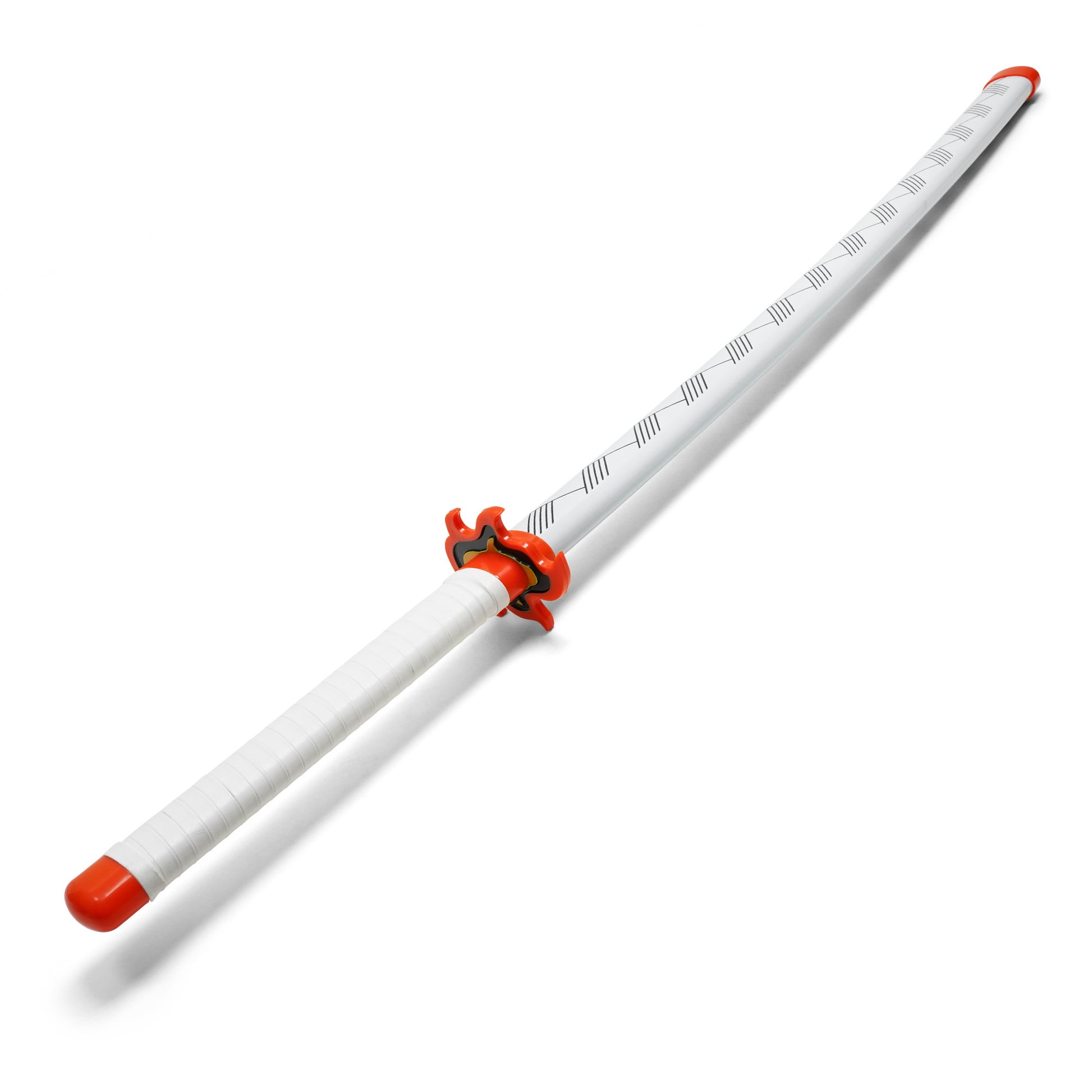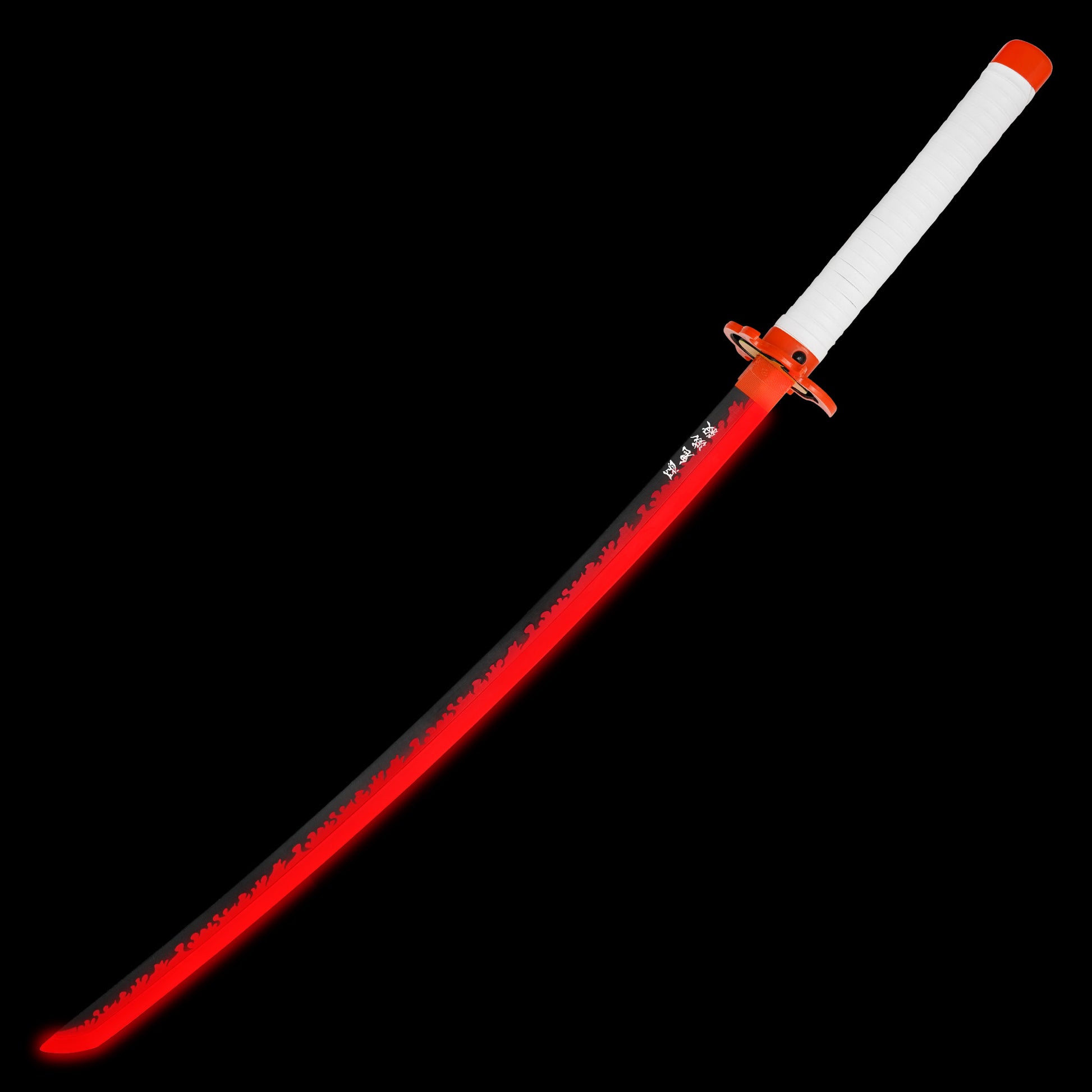 Embody the speed and precision of Zenitsu Agatsuma with this stunning glowing white LED Nichirin Katana, inspired by Demon Slayer. This 38.5” replica brings to life Zenitsu’s Thunder Breathing sword, featuring a 27” LED blade that glows bright white, illuminating its signature lightning-like hamon pattern. The 11.5” white and yellow wrapped handle ensures a comfortable grip, while the sleek white scabbard with orange accents stays true to the anime’s design. As one of the most visually striking blades in Demon Slayer, Zenitsu’s katana represents his explosive power and unmatched speed in battle. Whether for cosplay, display, or adding an eye-catching glow to your collection, this LED-powered Nichirin Katana is a must-have for any fan.