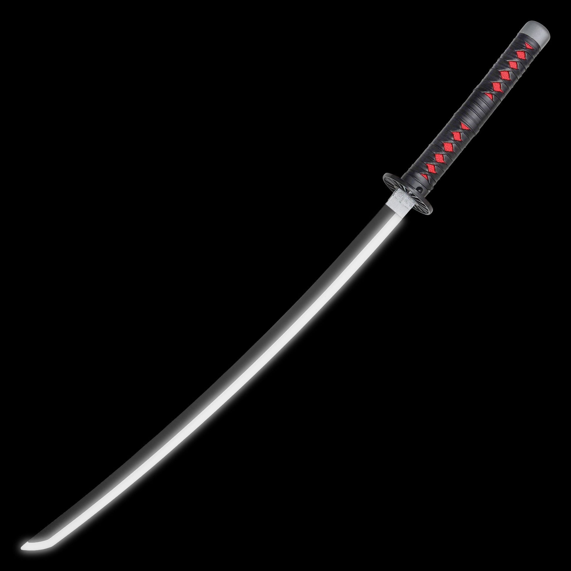 Wield the legendary Black Nichirin Katana of Tanjiro Kamado, now enhanced with a brilliant white LED glow, bringing his iconic blade from Demon Slayer to life. This 38.5” replica features a 27” LED blade that radiates white light, symbolizing Tanjiro’s mastery of Water Breathing and the Hinokami Kagura. The 11.5” red and black wrapped handle ensures a firm grip, while the sleek black scabbard with silver accents mirrors the anime’s design. As one of the rarest Nichirin blades, Tanjiro’s katana is both a mystery and a testament to his unwavering determination. Whether for cosplay, display, or adding an illuminated presence to your collection, this LED-powered sword is a must-have for every Demon Slayer fan.