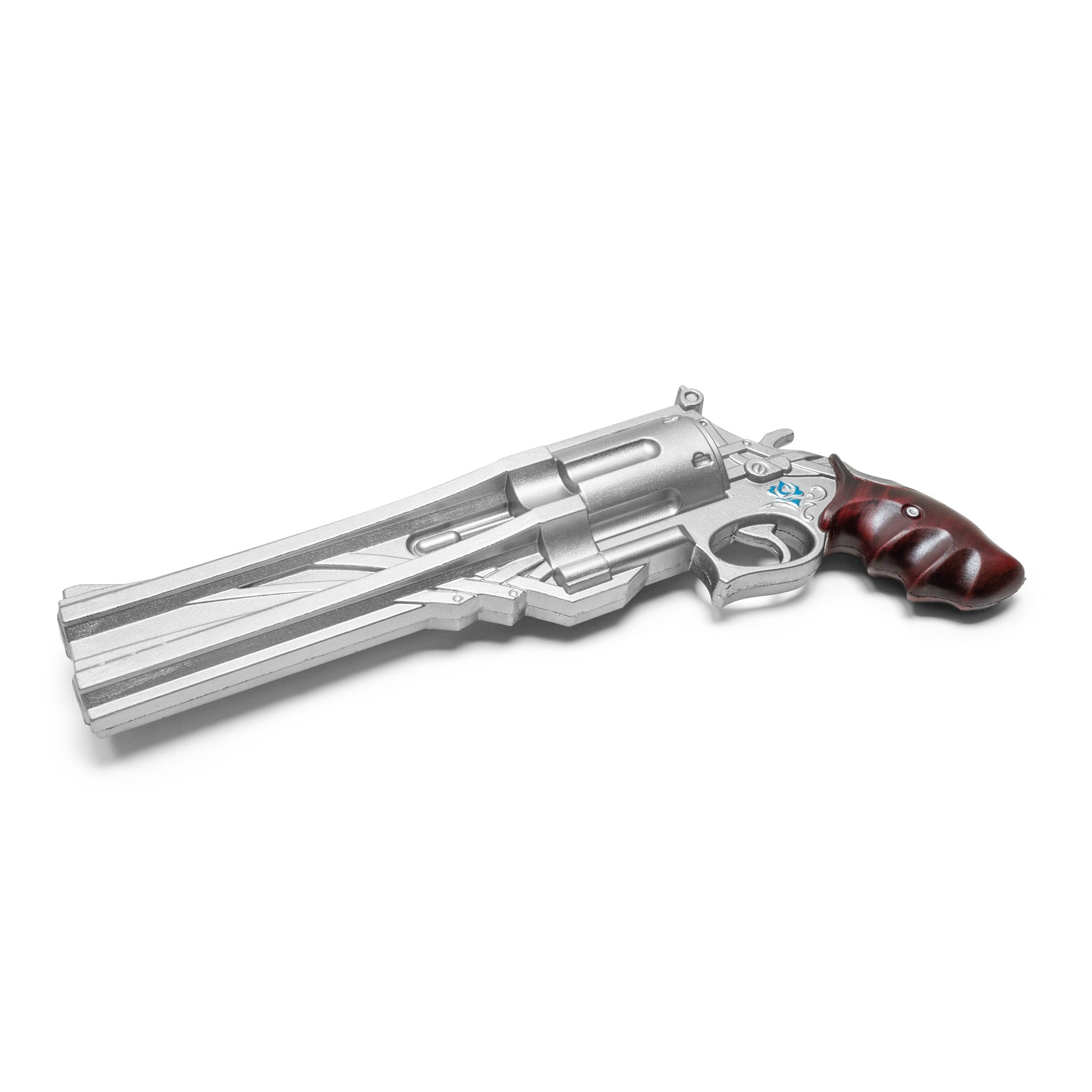 Step into the demon-slaying action of Devil May Cry 5 with Nero's Blue Rose Revolver, a stunning replica of the iconic double-barreled firearm. Measuring 15.5” in length with a sleek silver foam barrel and a 3.5” brown foam grip, this intricately detailed piece captures the unique design and flair of Nero's signature weapon. Known for its unparalleled craftsmanship and dual-chambered barrel, the Blue Rose symbolizes Nero’s ingenuity and unrelenting spirit in his battle against the demonic hordes. Lightweight and safe, this foam replica is perfect for cosplay, collection, or display, allowing fans to embody the Devil Hunter’s bold style. Elevate your Devil May Cry collection with this must-have replica that’s as stylish as it is functional.