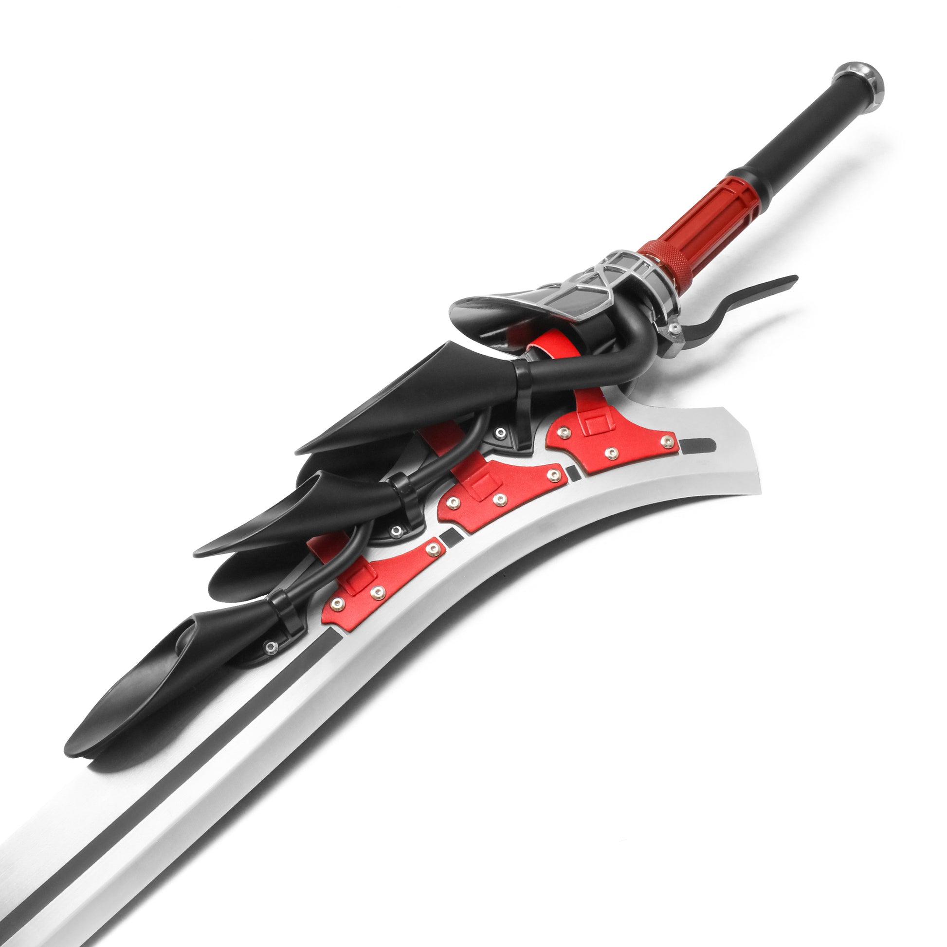 Command the battlefield like Nero with the iconic Red Queen Sword from Devil May Cry 5. This massive replica, measuring 53.5" in total length, faithfully reproduces the fearsome weapon known for its power and unique engine rev feature in the game. Featuring a striking 40" stainless steel blade with black accents, this sword perfectly captures the high-octane action and style of the Devil May Cry series. The 13.5" red and black handle is designed for a firm grip, making it ideal for cosplay or collection display. Complete with a display stand, this replica is a must-have for any Devil May Cry fan looking to bring Nero's signature weapon to life.