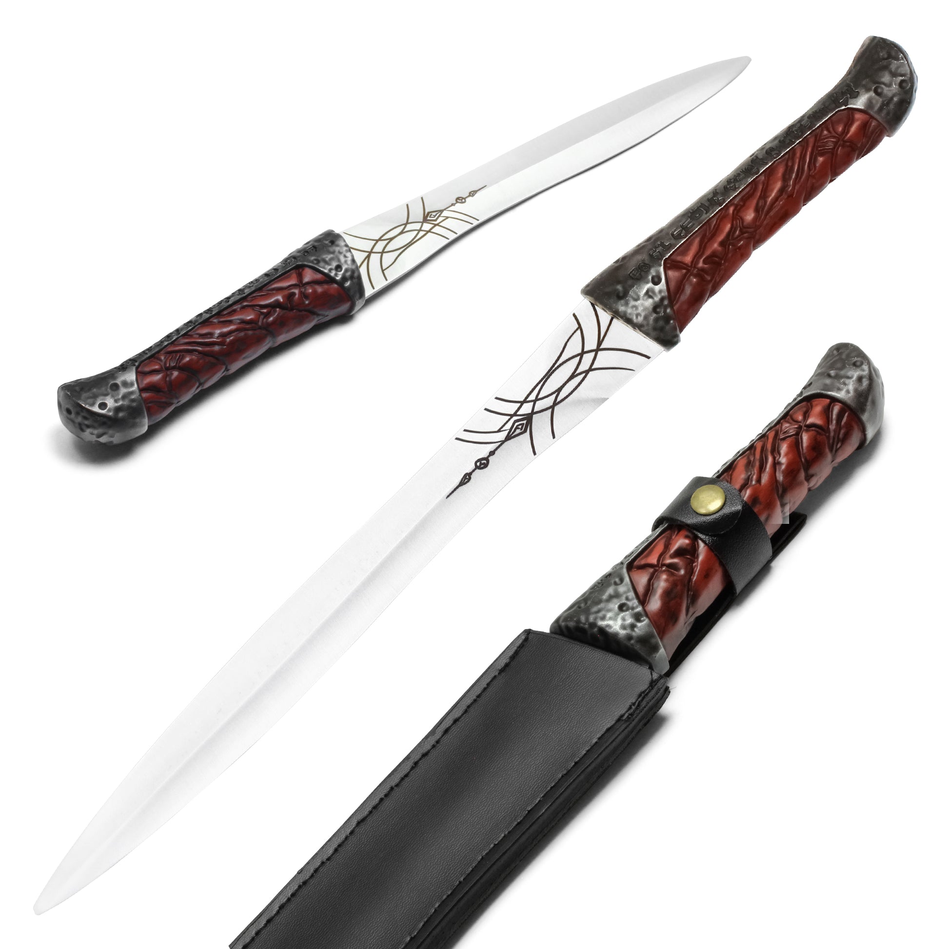 Embark on a journey through the sands of Arrakis with the Crysknife of Paul Atreides, an iconic replica from the epic sci-fi film Dune. This finely detailed dagger features a 13.25-inch etched stainless steel blade, symbolizing the revered weapon of the Fremen. The 5.75-inch silver and brown handle is expertly designed to mirror the ceremonial dagger that holds deep significance in the universe of Dune. Ideal for cosplayers, collectors, or display, this Crysknife comes complete with a black leather sheath, making it a must-have for fans of the legendary saga.