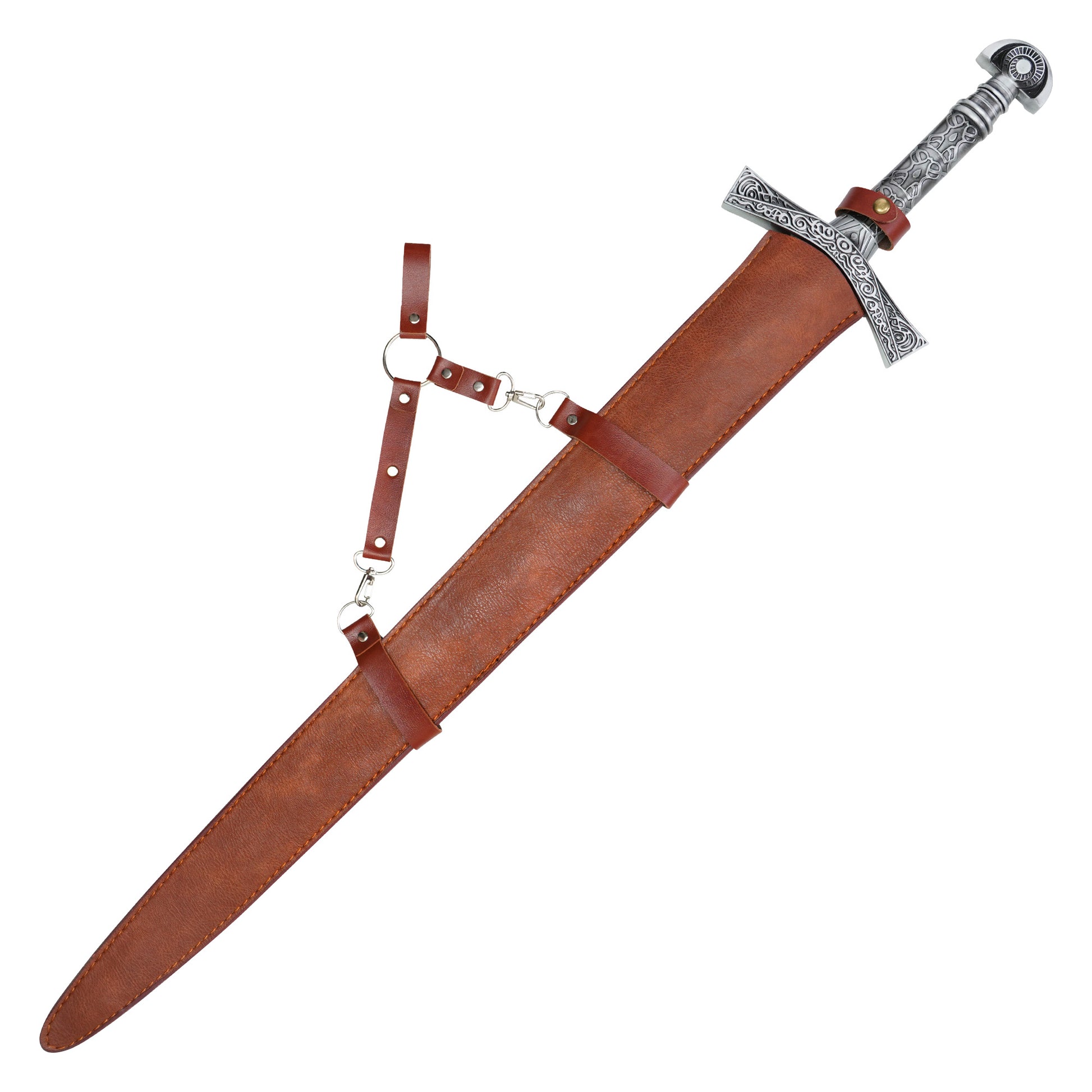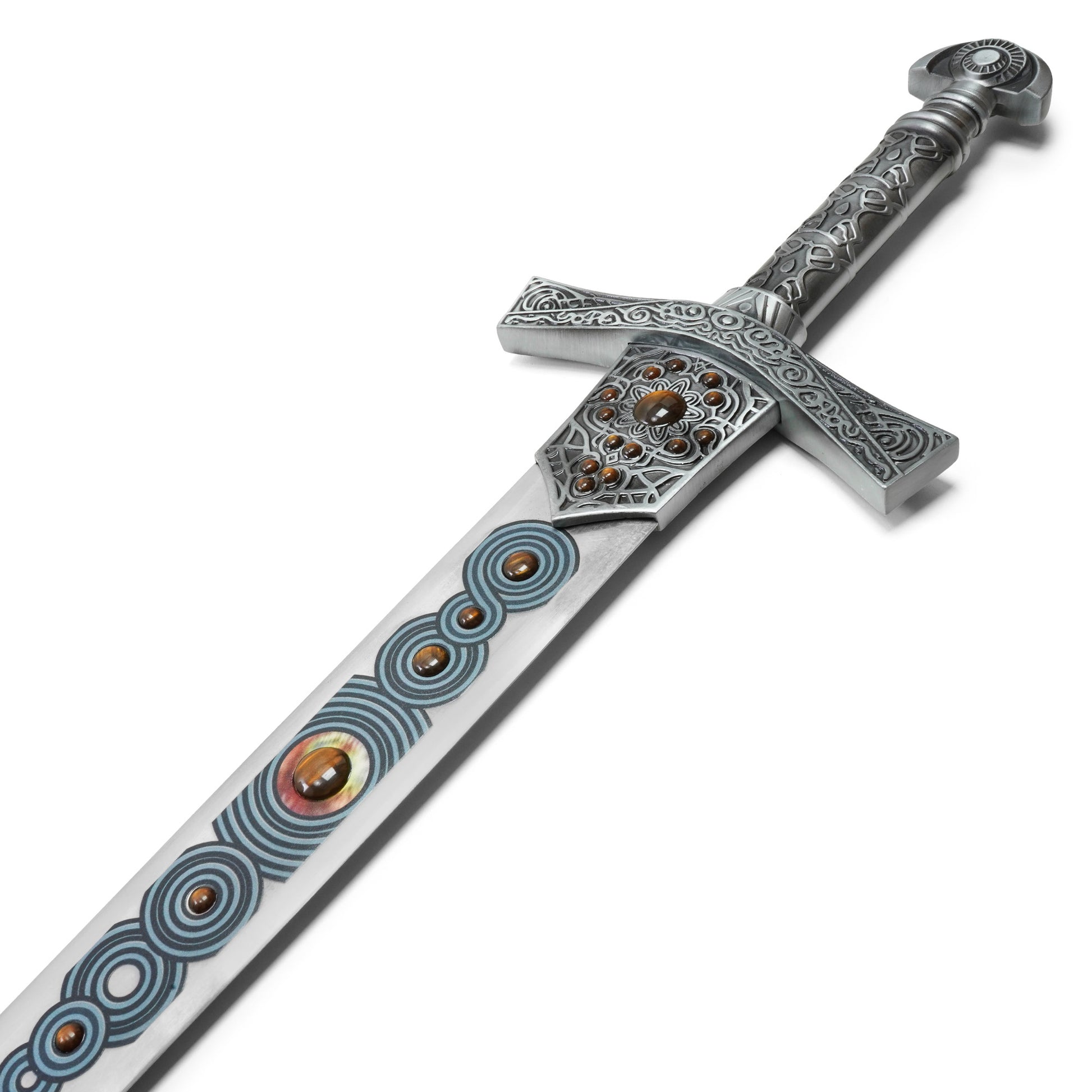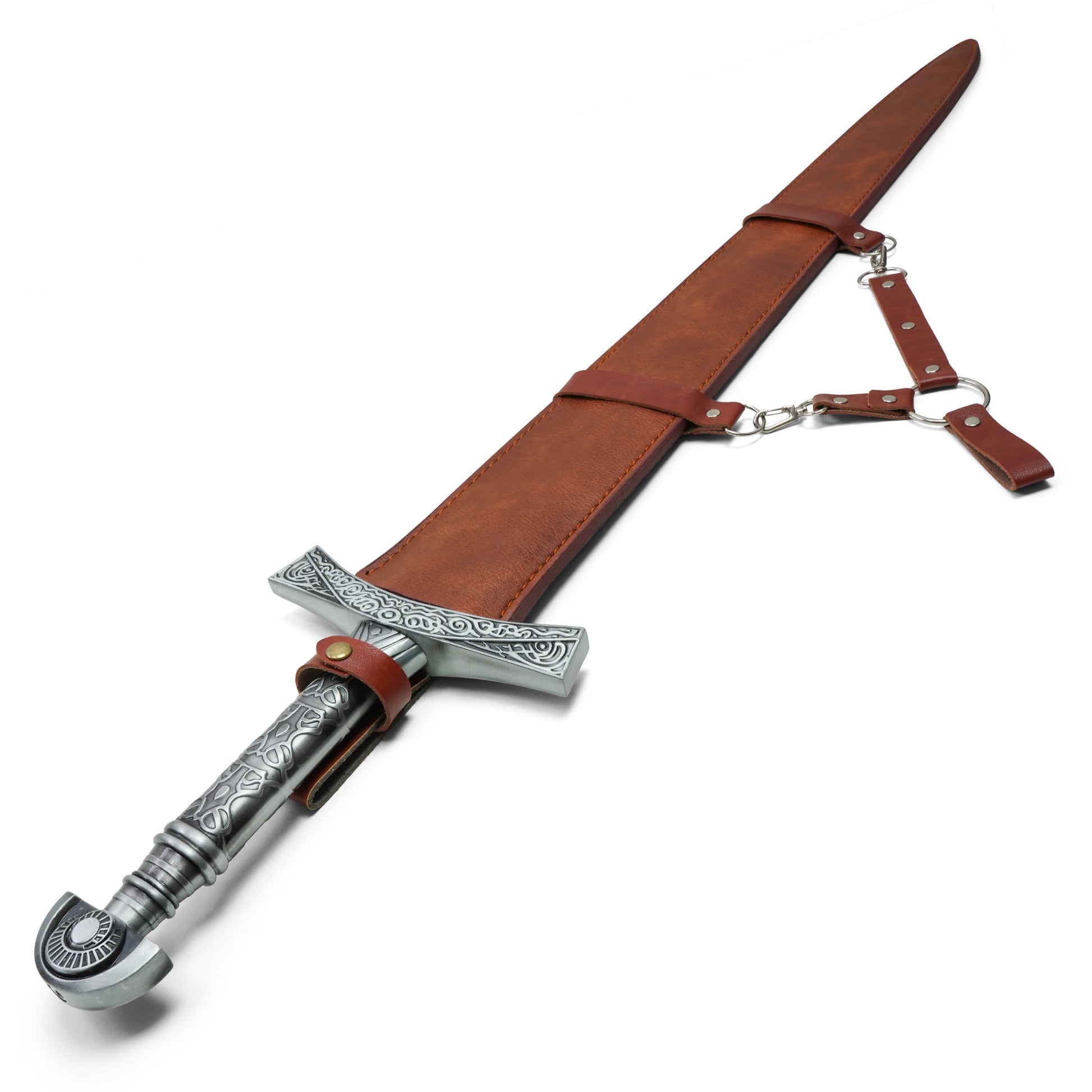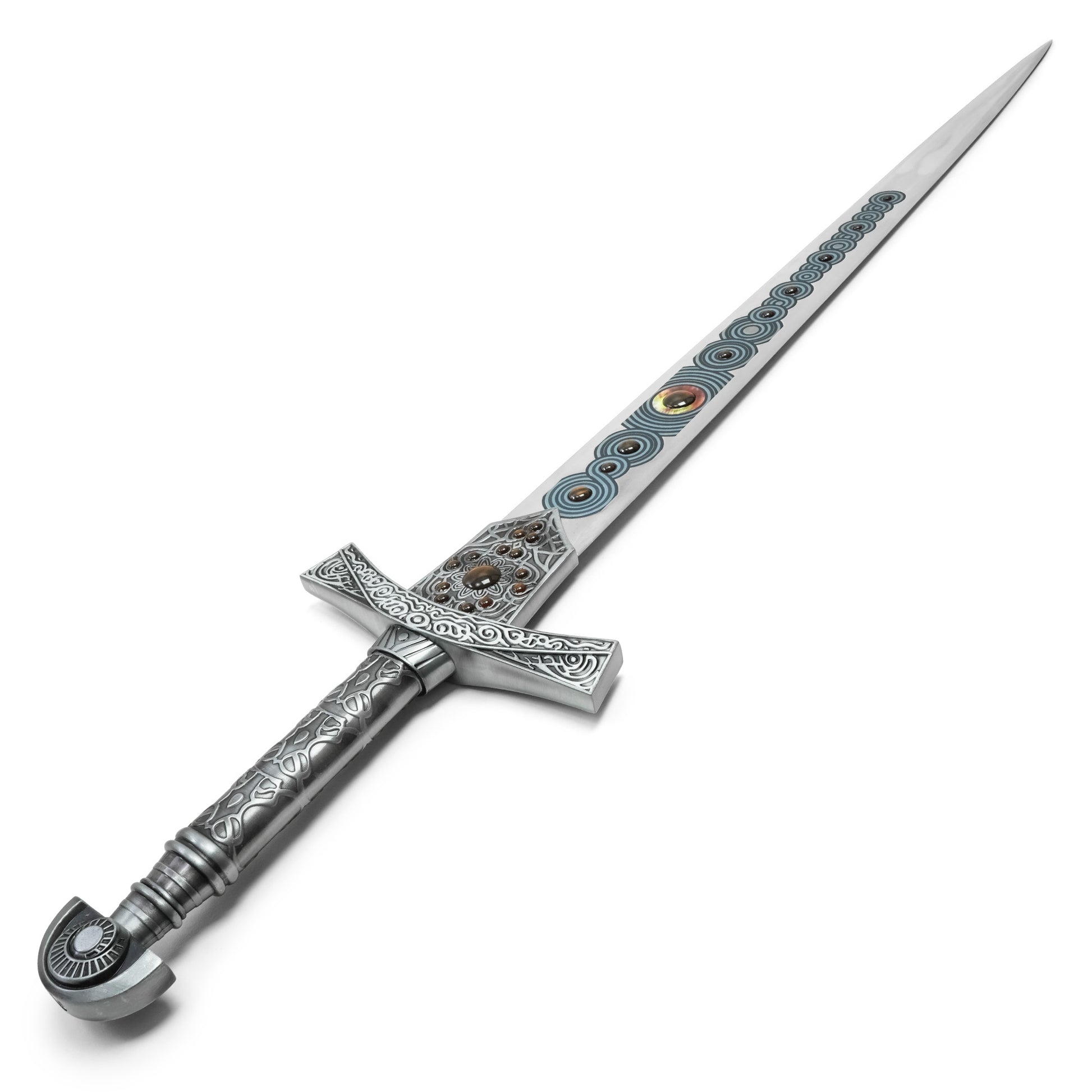 Wield the grace and solemn power of the Miquellan Knight’s Sword, an ornate and mystical blade drawn straight from the world of Elden Ring. This 39.5” full-sized replica features a 28” stainless steel blade inlaid with distinctive jeweled accents and layered circular engravings, symbolizing the divine allegiance of the knights who served under Miquella. The 11.5” detailed metal handle showcases elegant patterns and weathered craftsmanship that echo the game’s sacred aesthetic. Known for their loyalty and sorrowful fate, the Miquellan Knights were guardians of one of the game’s most enigmatic figures. Complete with a strapped faux leather sheath, this replica is ideal for cosplay, display, or collectors seeking a piece of lore-rich artistry from the Lands Between.