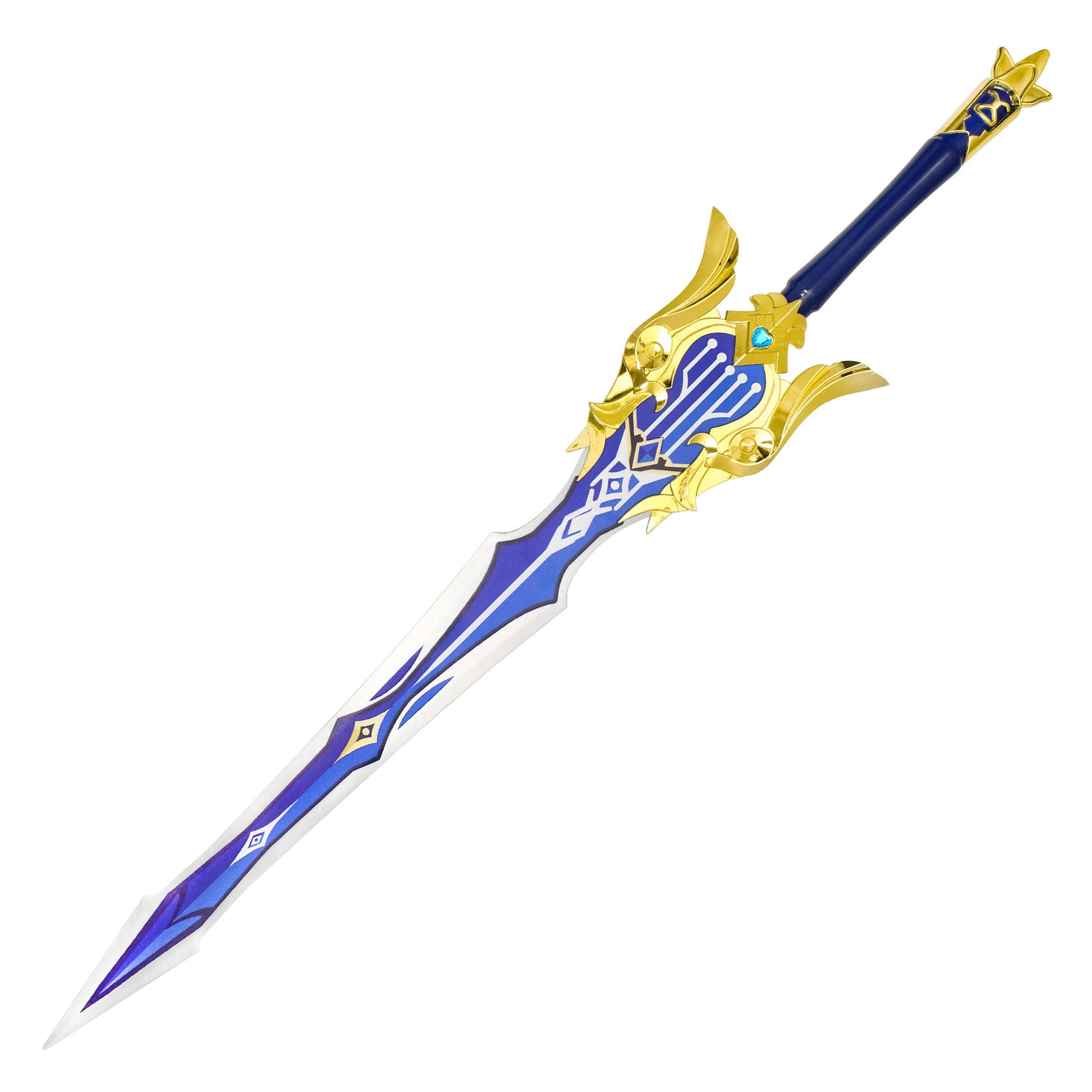 Unleash the power of the Song of Broken Pines, one of the most majestic claymores from Genshin Impact, now available as a stunning steel replica. This beautifully crafted sword features a 30.25" blue and silver steel blade, inspired by its in-game counterpart, representing the sheer strength and elegance of the Mondstadt region's heritage. The intricate 14.5" gold and blue handle showcases exquisite detailing that reflects the lore of the weapon, making it perfect for cosplay or as a centerpiece in any collection. Complete with a wood display plaque, the Song of Broken Pines is a must-have for any Genshin Impact fan seeking an authentic and impressive replica to celebrate their favorite game.