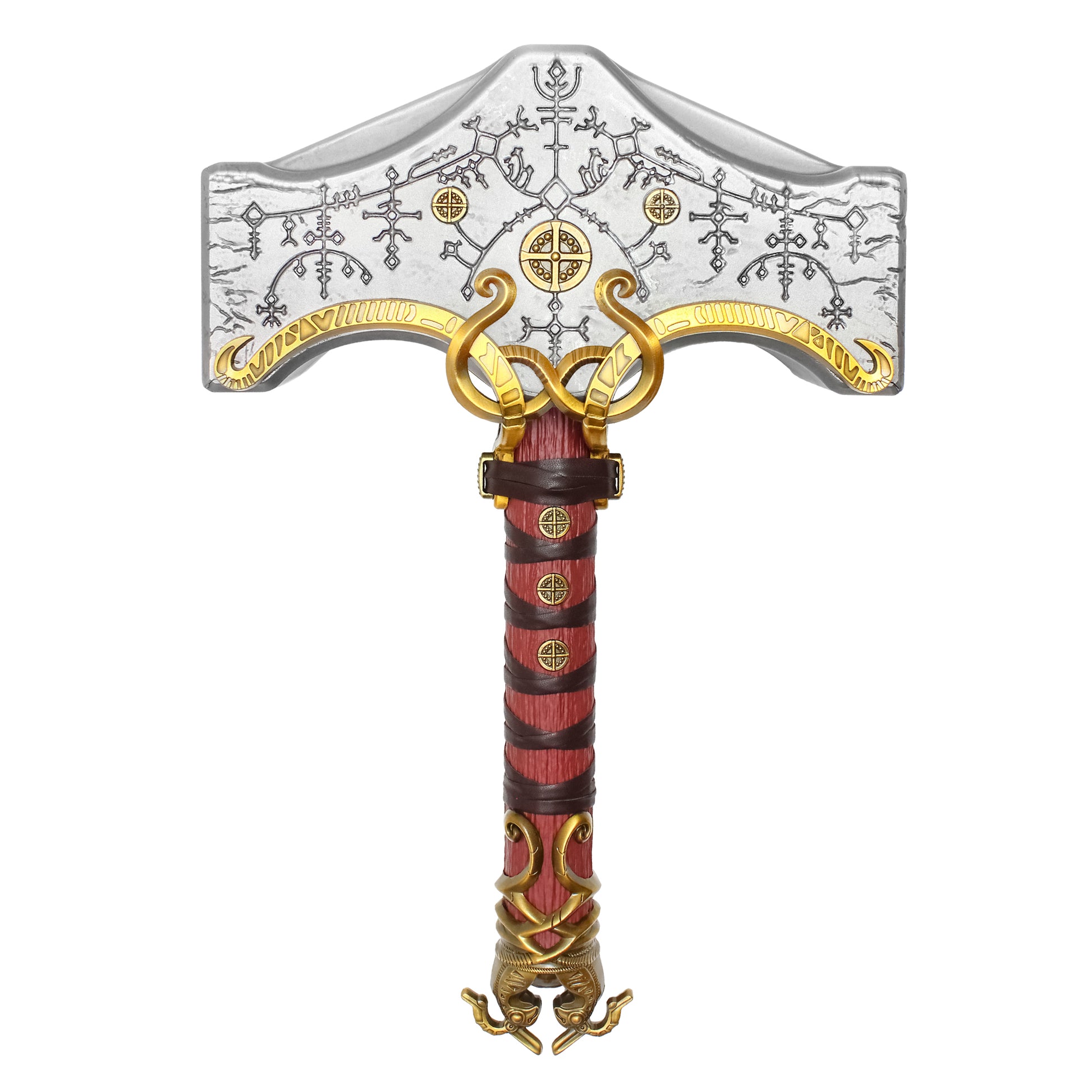 Unleash the thunderous power of Thor with the Mjölnir Hammer from God of War. This stunning metal replica is a must-have for fans of the iconic video game series, showcasing the intricate detailing and legendary craftsmanship that defined Thor’s mighty weapon. With an overall length of 19.75", the hammer’s imposing 12.5" x 6.25" metal head features ancient Norse engravings, while the 13" resin wood handle is wrapped in leather-like detail to provide a firm grip. This piece is perfect for cosplayers looking to embody the God of Thunder, or for collectors seeking a striking display. Fans of God of War will appreciate the authenticity and attention to detail in this epic replica, ideal for cosplay, collection, or display.