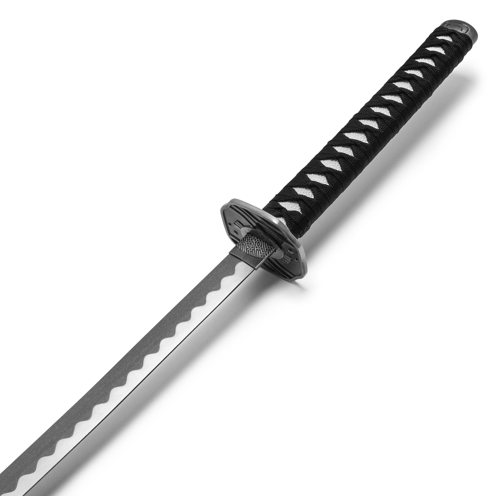 Channel the storm-forged fury of Chihiro Rokuhira with the “Enten” Enchanted Blade, a detailed steel replica from the rising hit Kagurabachi. Crafted by the hands of a legendary swordsmith and imbued with mystical energy, Enten is the first of the enchanted blades—a weapon forged for vengeance against the sorcerers who wronged his family. This 37.75-inch katana features a 26.5-inch patterned stainless steel blade with a distinct hamon-style wave, a wrapped 11.25-inch handle with a silver tsuba guard, and a sleek black saya with silver accents for secure storage and elegant presentation. Designed for cosplay, display, or collection, this blade captures the energy and precision of Chihiro’s deadly resolve. A must-have for fans of Kagurabachi and collectors of anime weaponry.