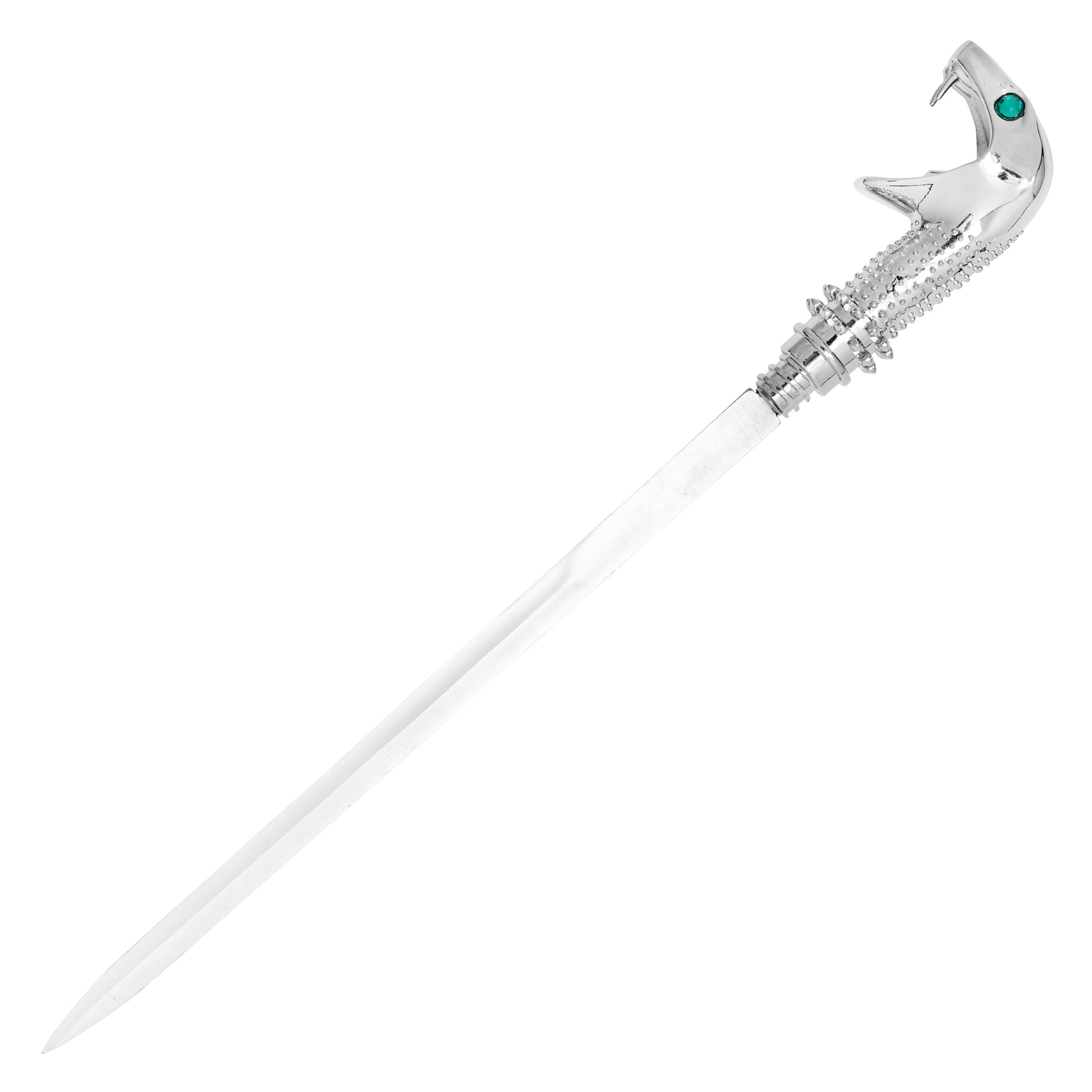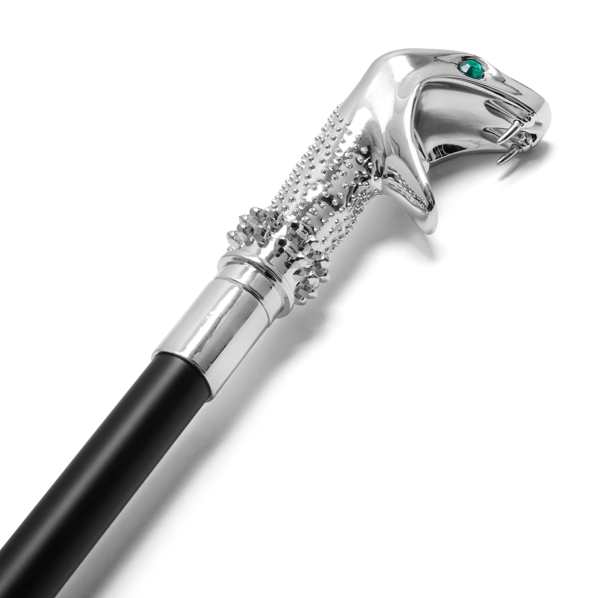 Channel the dark elegance of Harry Potter's Lucius Malfoy with this intricately crafted replica of his iconic walking cane. This stunning piece captures the sinister charm of Malfoy’s aristocratic demeanor, complete with the detailed chrome snake head handle, adorned with emerald eyes, reflecting the wizard’s cunning persona. The cane also features a hidden steel blade, seamlessly concealed inside the shaft, just like in the films. Whether for cosplay or as a standout display piece, this replica brings the magic and mystique of the Harry Potter series to life, perfect for any fan or collector.