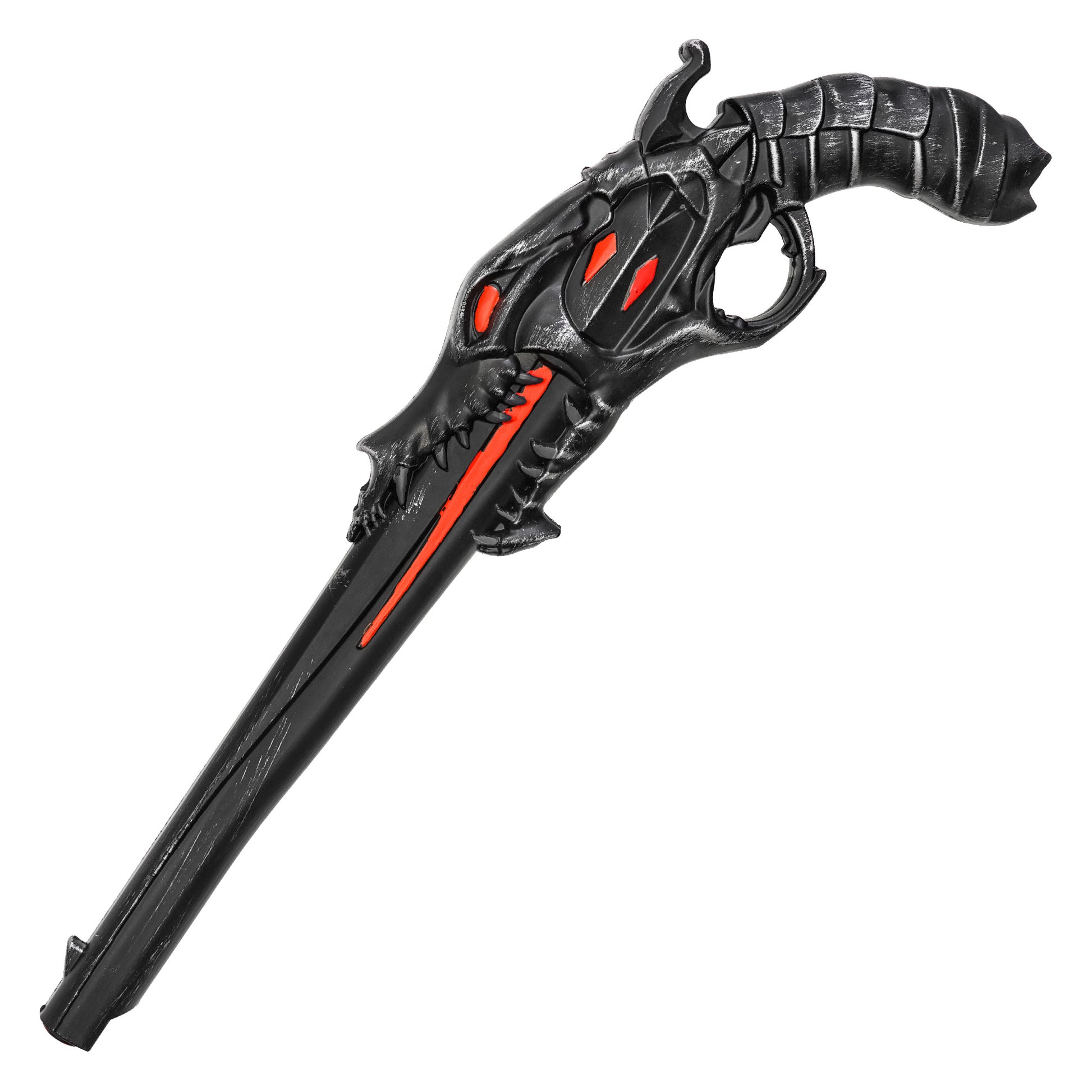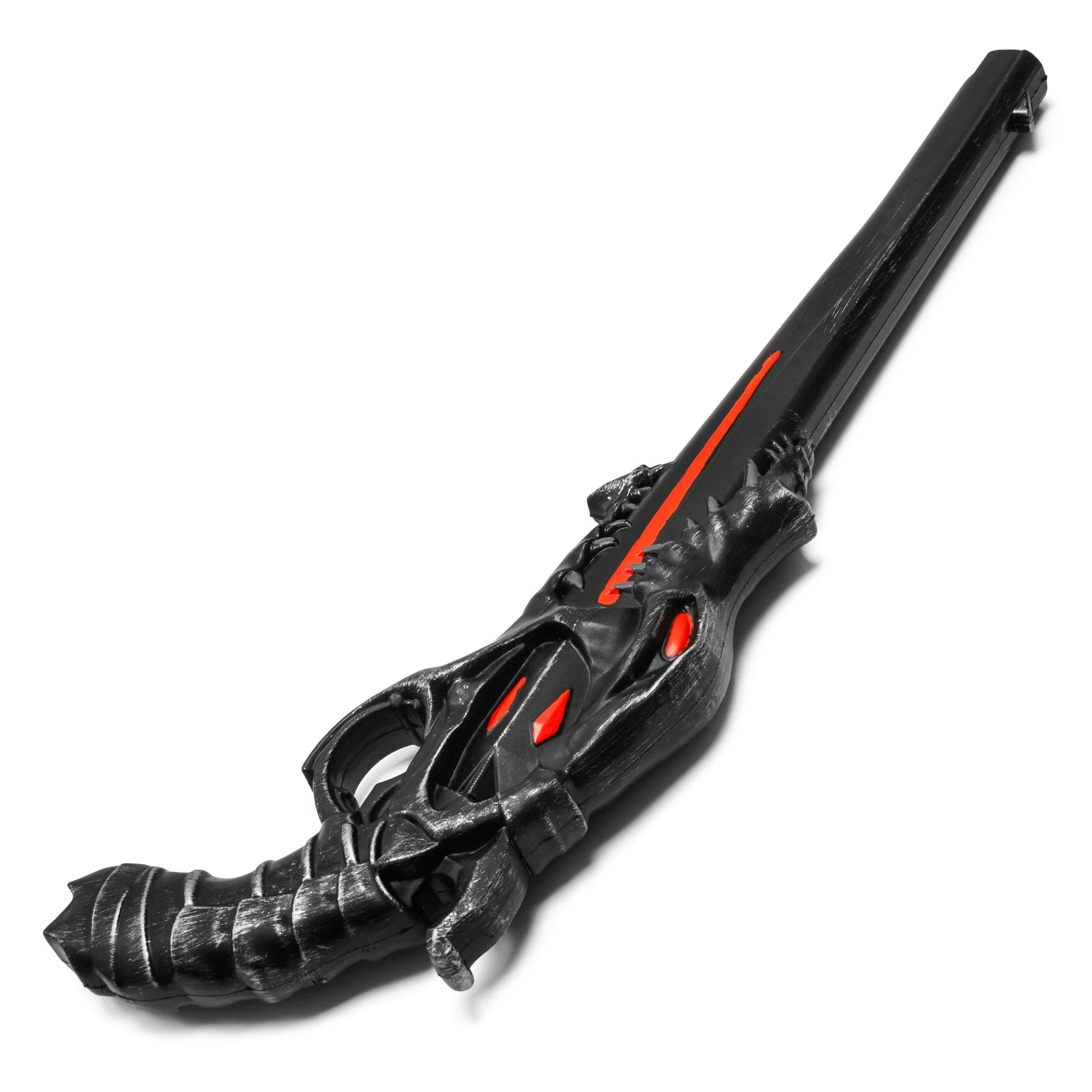 The "The Hounds" Pistol Replica from Metal: Hellsinger brings the fiery spirit of the rhythm-based shooter to life with stunning detail. Wielded by the Unknown during her battle across the infernal realms, The Hounds are twin pistols known for their rapid-fire power and pulse-pounding energy synced to the game's heavy metal soundtrack. This collectible features a 17" black foam barrel with a sturdy 3.25" black foam grip, making it lightweight, safe, and perfect for cosplay, collection, or display. Crafted from durable foam, this replica captures the aggressive and iconic design fans will instantly recognize, offering a must-have piece for anyone looking to channel the relentless energy of Metal: Hellsinger into their collection.