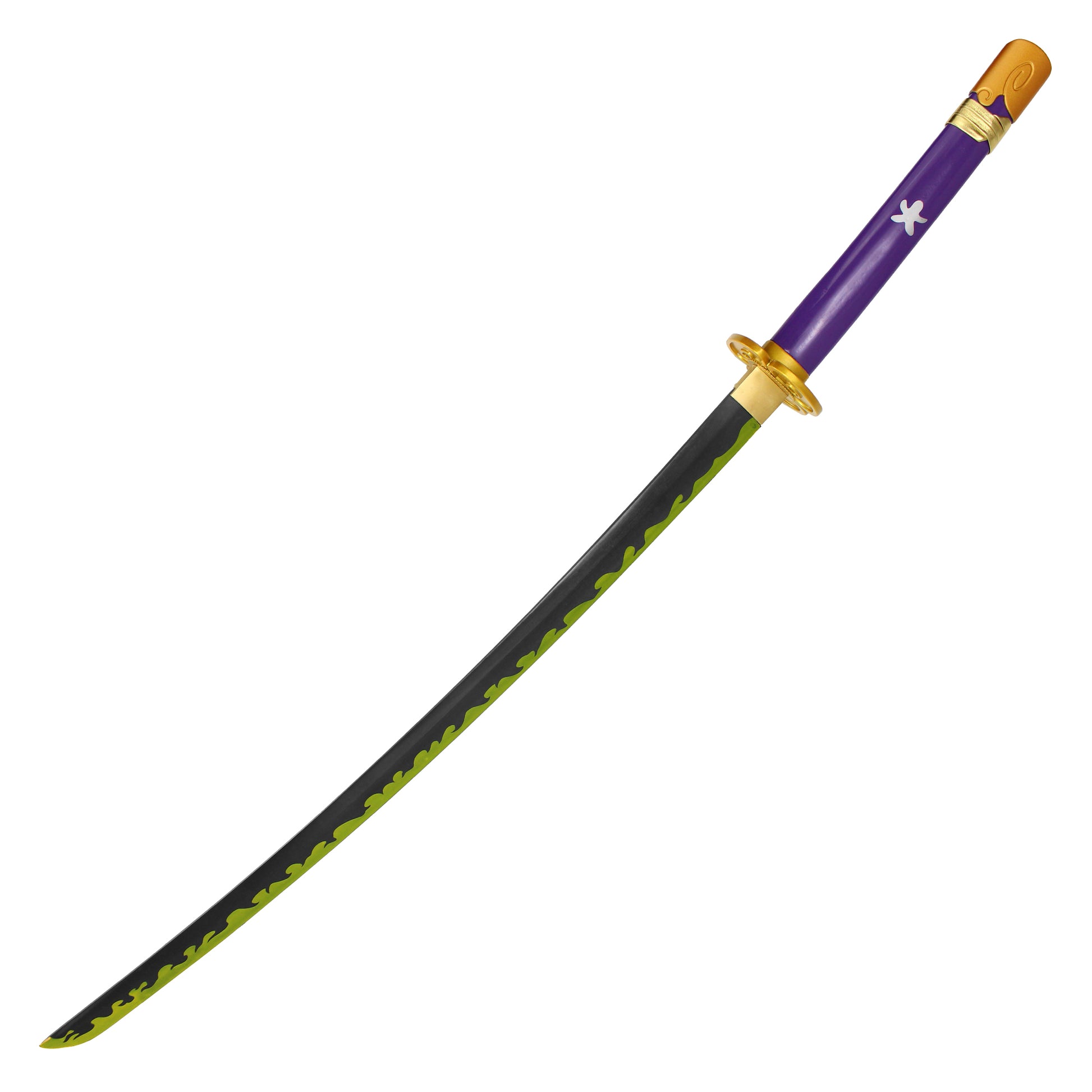 Wield the mighty "Enma", Roronoa Zoro's legendary sword from One Piece, now available as a meticulously crafted carbon steel replica. Famous for its ability to unleash immense power, this Enma features a stunning 27.5" carbon steel flaming blade, designed to reflect the sword's raw energy and precision. The 12" purple and gold handle offers a striking contrast, enhancing its aesthetic appeal. Whether you're a cosplayer or a collector, this sword is an impressive addition to any One Piece fan’s collection. The purple saya with red tassels adds a touch of elegance, making this katana a must-have for any display. Crafted from high-quality materials, this replica ensures durability and authenticity, perfect for those who appreciate both form and function.