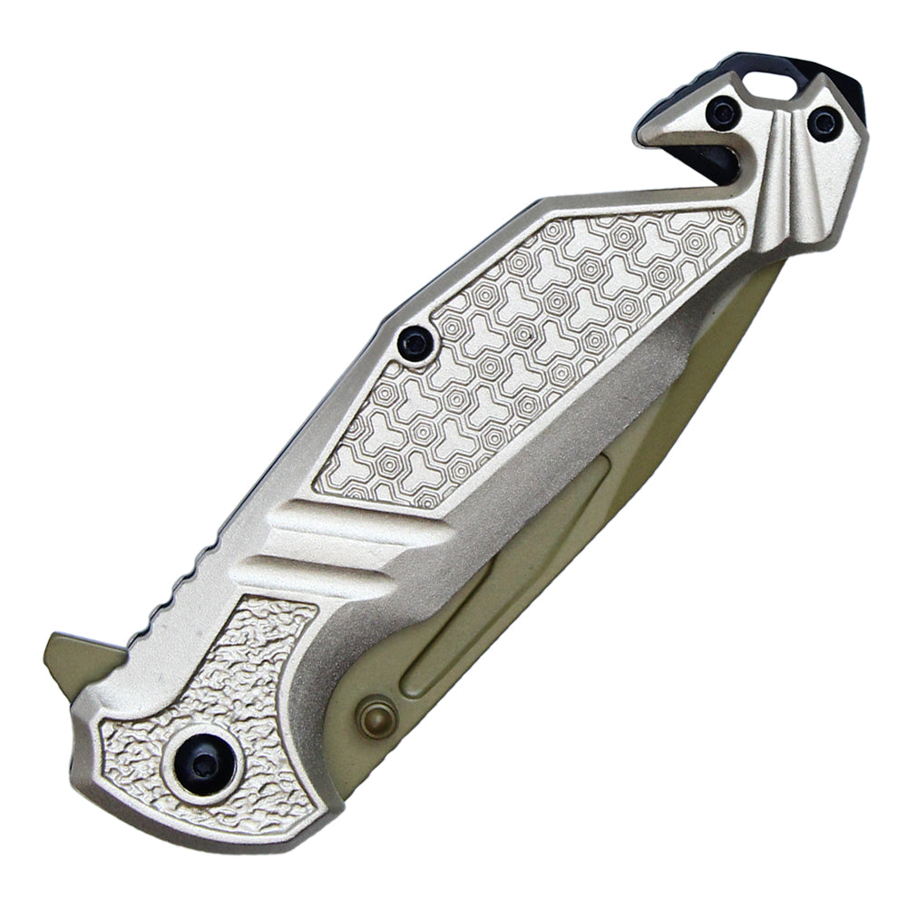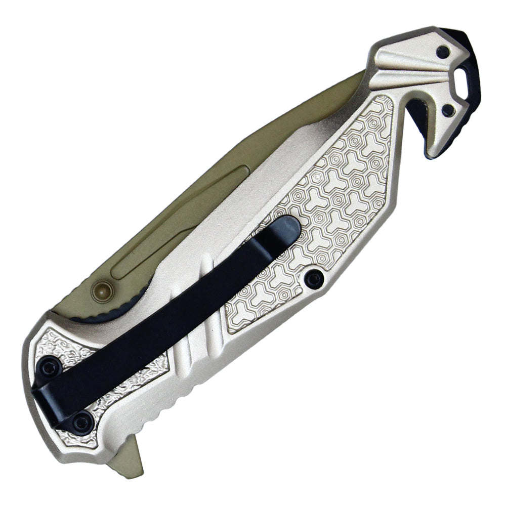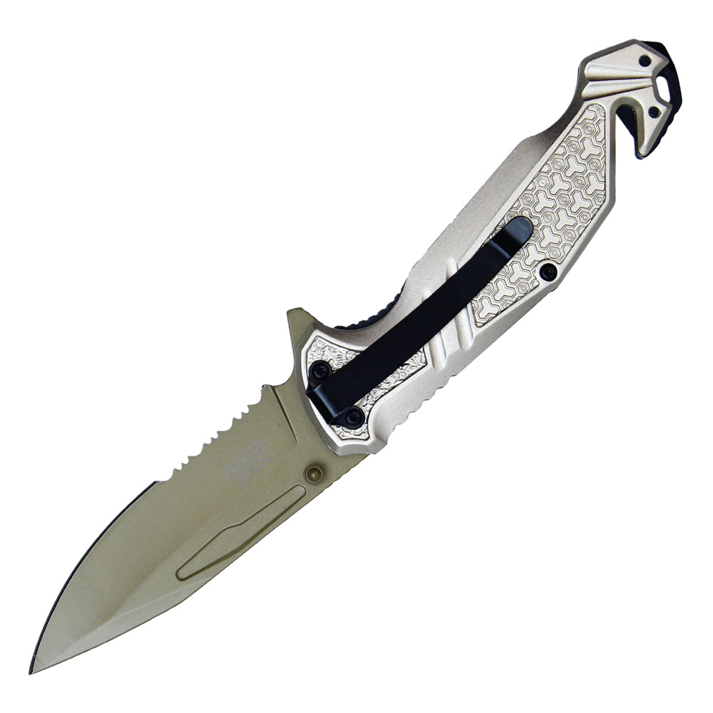 Wartech - 8.25" Serrated White & Gold | Spring Assisted Pocket Knife
