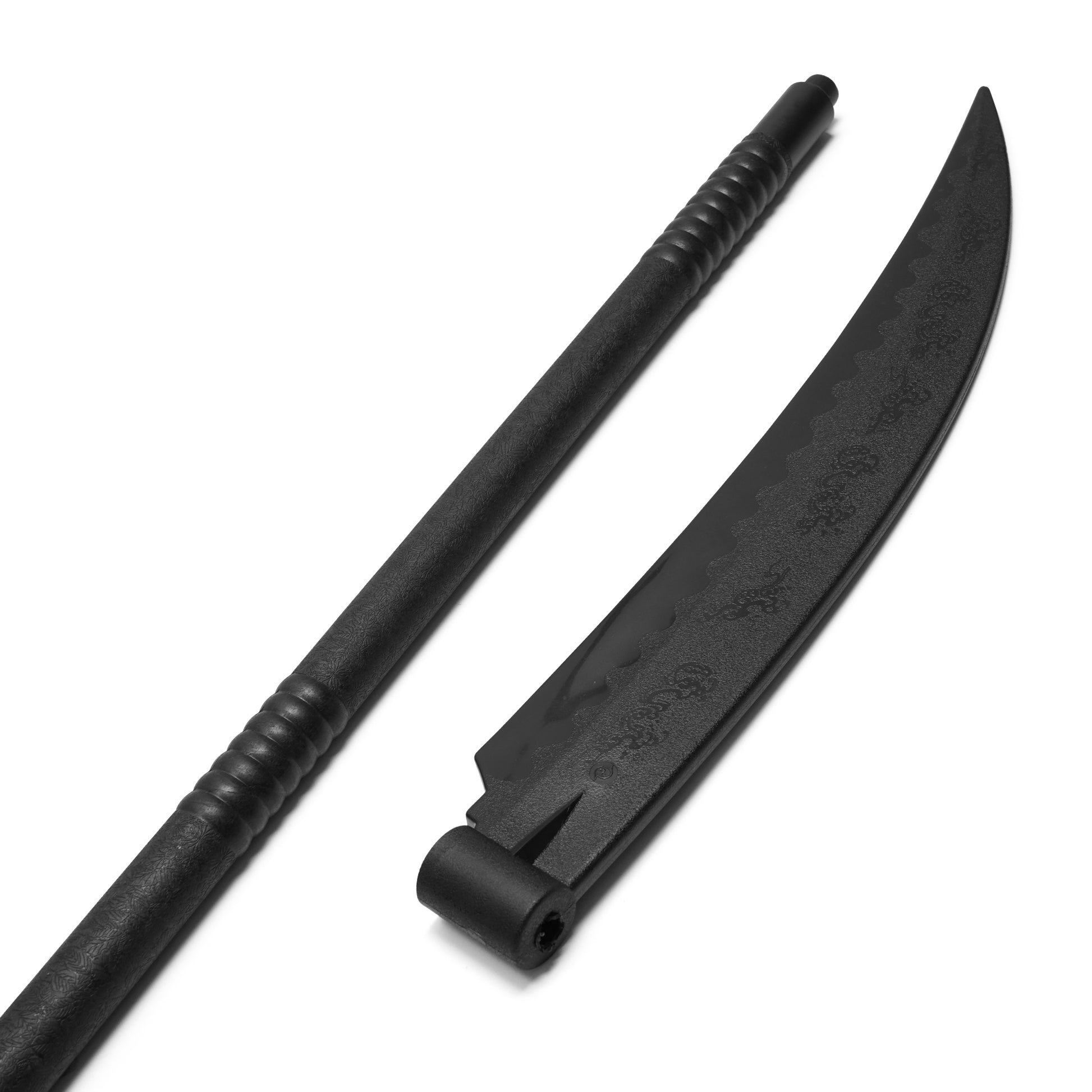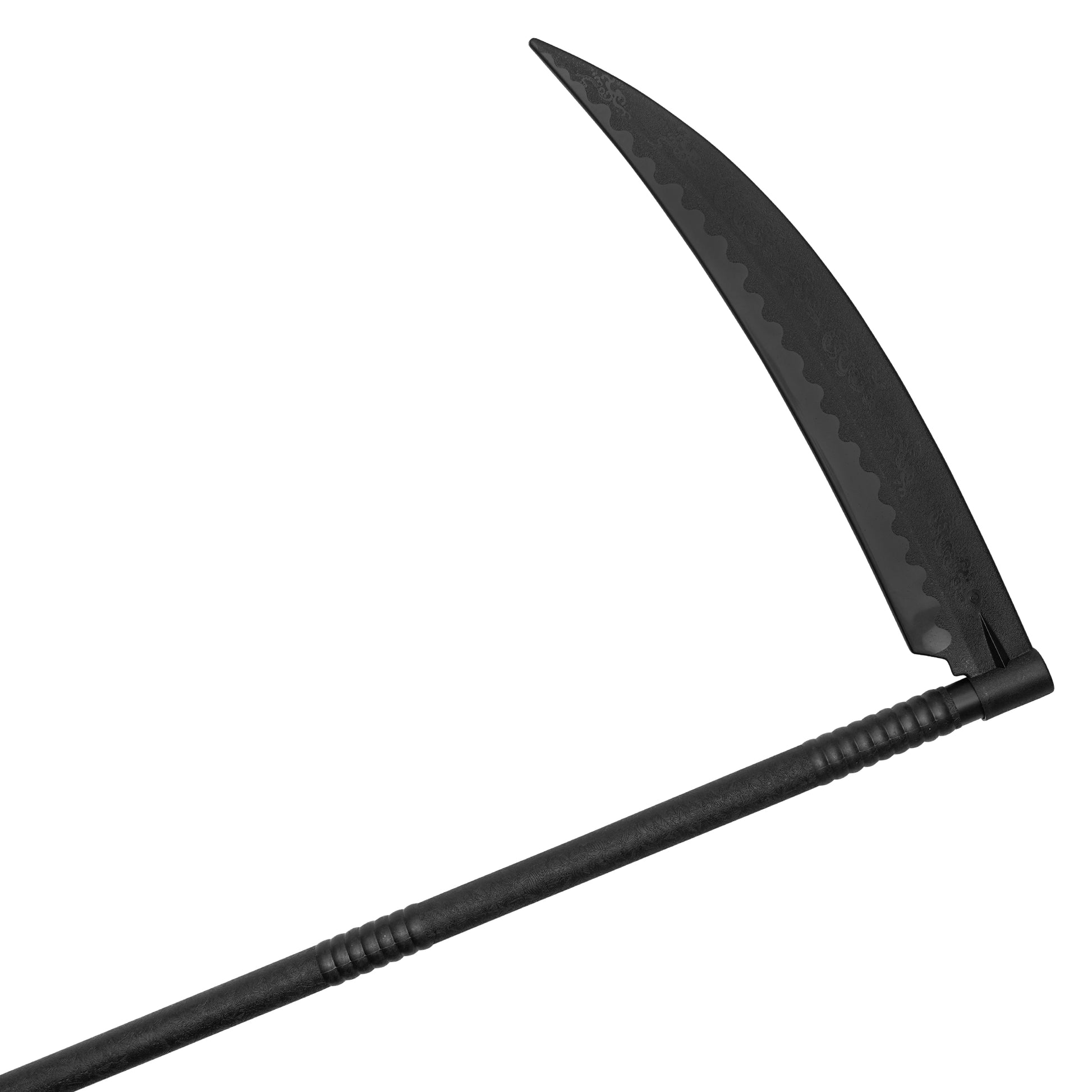 Embrace the mystique of the legendary Reaper Scythe, designed for training, cosplay, or display purposes. This full-size replica captures the iconic silhouette of a traditional scythe, perfect for those looking to wield a weapon of mythological and symbolic significance. Made from durable black polypropylene, this lightweight yet sturdy scythe ensures safety during training while maintaining an authentic look for cosplay or collection. With a detachable polypropylene sickle head and shaft, it’s easy to store and assemble, making it the ideal choice for aspiring reapers or collectors.