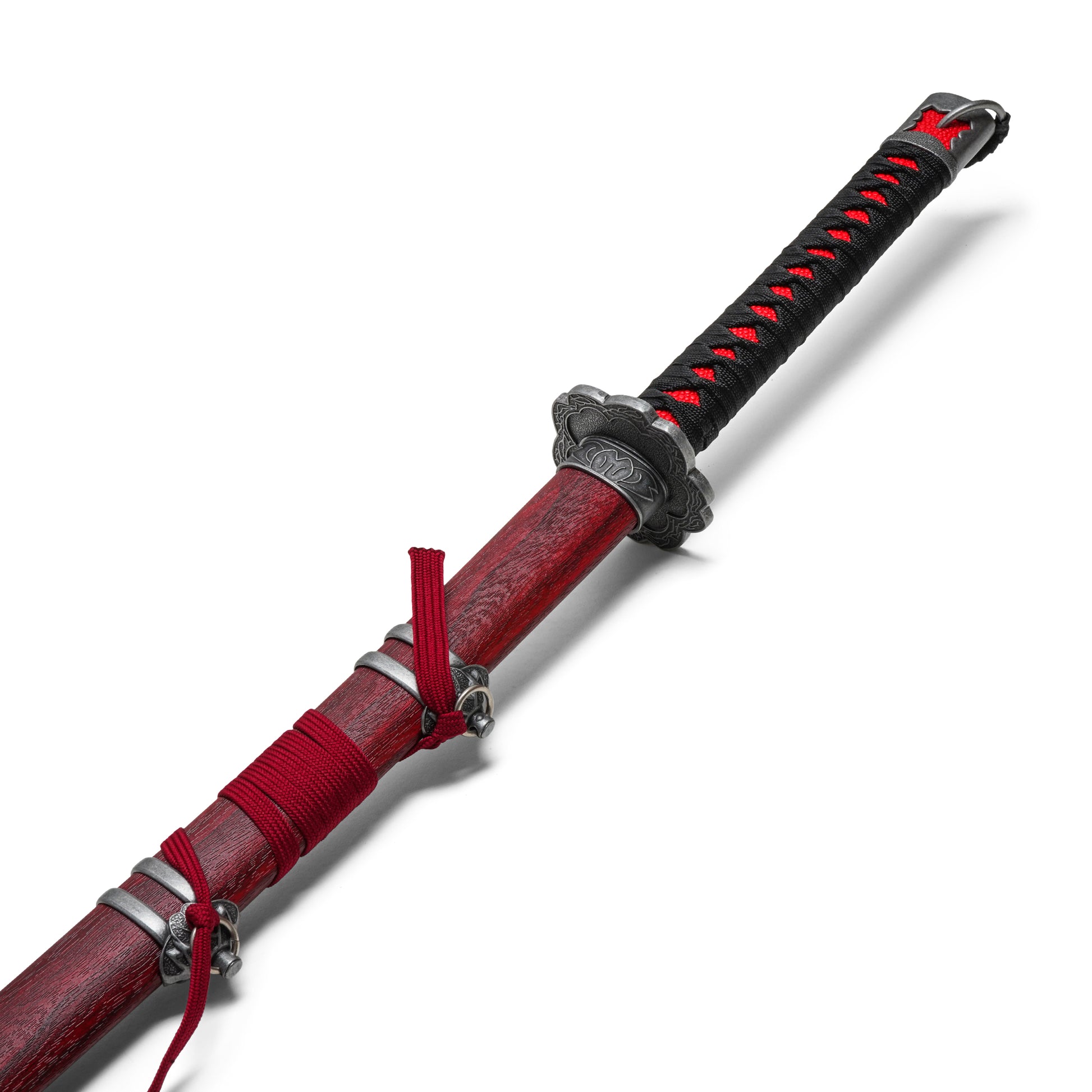Step into the shoes of the legendary shinobi with Sekiro's Katana, a stunning replica inspired by Sekiro: Shadows Die Twice. With its iconic blood-red blade and meticulously wrapped red and black handle, this sword symbolizes both the fierce battles and the honorable warrior's path. Perfect for cosplayers or collectors, this katana stays true to the intricate design seen in the game, capturing Sekiro's stealth and power. The detailed red textured saya completes the look, offering an authentic and bold display for any Sekiro fan or katana enthusiast.