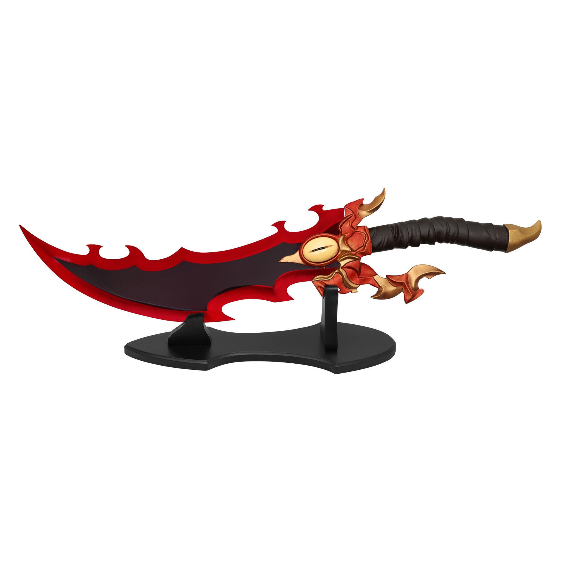 Wield the infernal might of the Shadow Monarch with the Demon King’s Dagger (1 of 2), a striking steel replica inspired by Solo Leveling. As one half of Jin-Woo’s dual-wielded daggers, this weapon channels the wrath and elegance of his awakened form—crafted for speed, power, and dominance in battle. Measuring 24.75 inches, the dagger features a 15.5-inch two-tone red steel blade with flame-like contours, paired with a 9.25-inch brown handle wrapped in dark detail and finished with gold clawed accents. Mounted on a black wood display stand, this piece is ideal for cosplay, collection, or display—and pairs perfectly with its twin counterpart for the full Demon King effect.