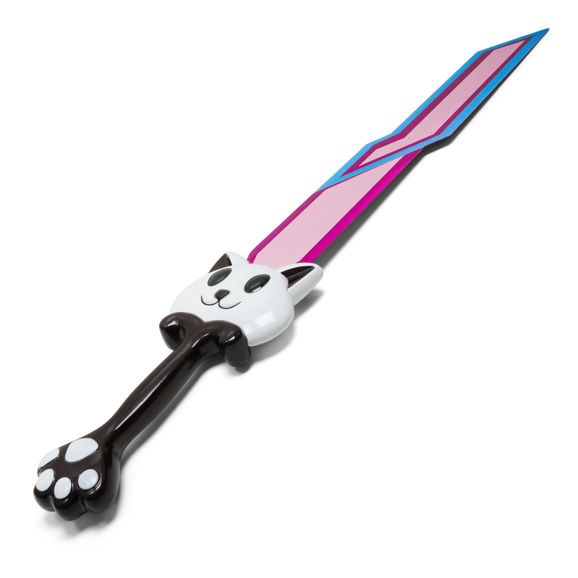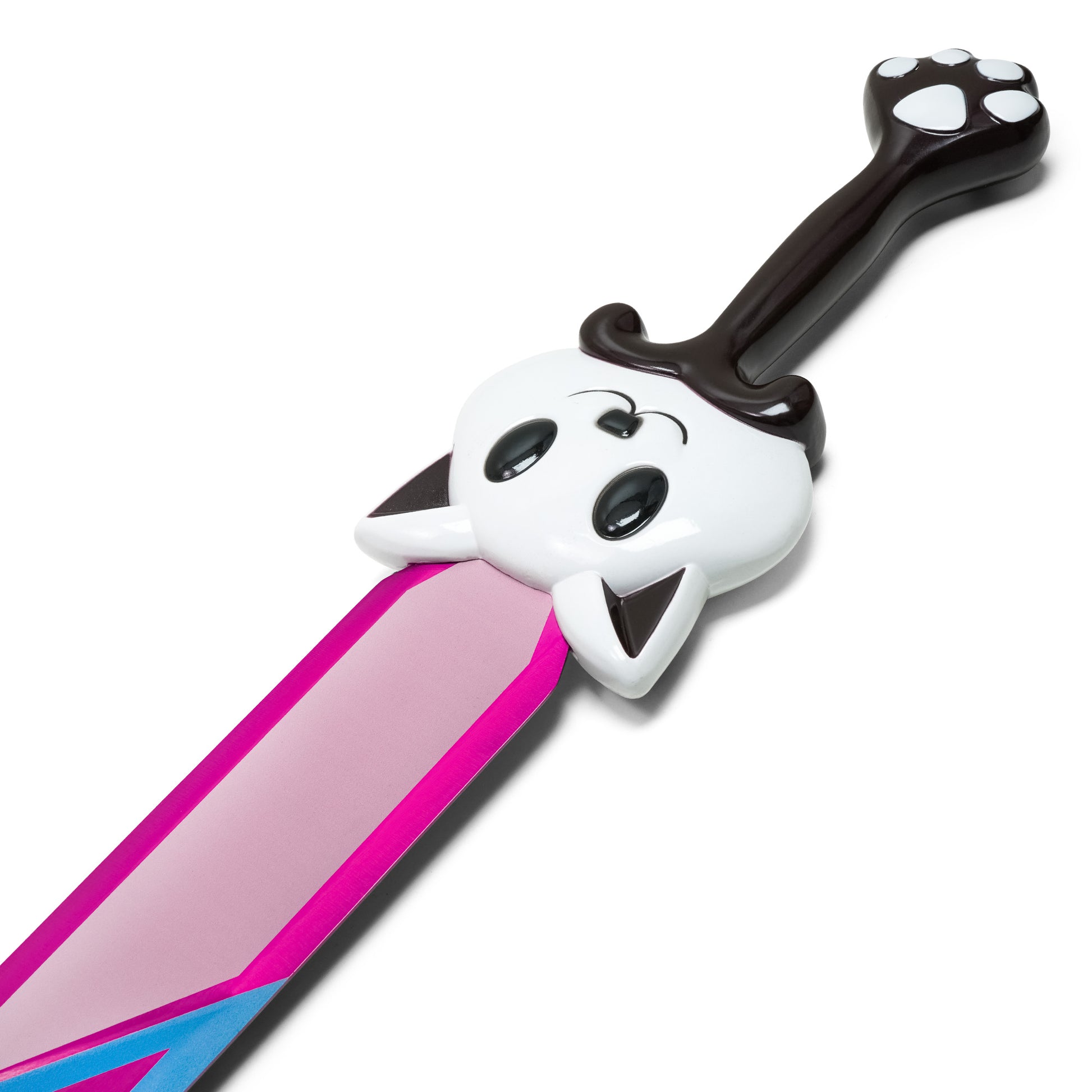 Harness the whimsical power of the Mewomere Sword, a fan-favorite weapon from Terraria. This striking replica brings the in-game weapon to life with its vibrant design and playful cat-themed aesthetic. Featuring a 25-inch multicolor metal blade outlined in vivid pink and blue hues, this sword is as eye-catching as it is unique. The 11-inch brown and white handle, complete with a cat face guard and paw-shaped pommel, adds a touch of charm and authenticity for devoted fans. Perfect for cosplay, collection, or display, the Mewomere Sword is a must-have for any Terraria enthusiast looking to showcase the quirky, creative spirit of the game.