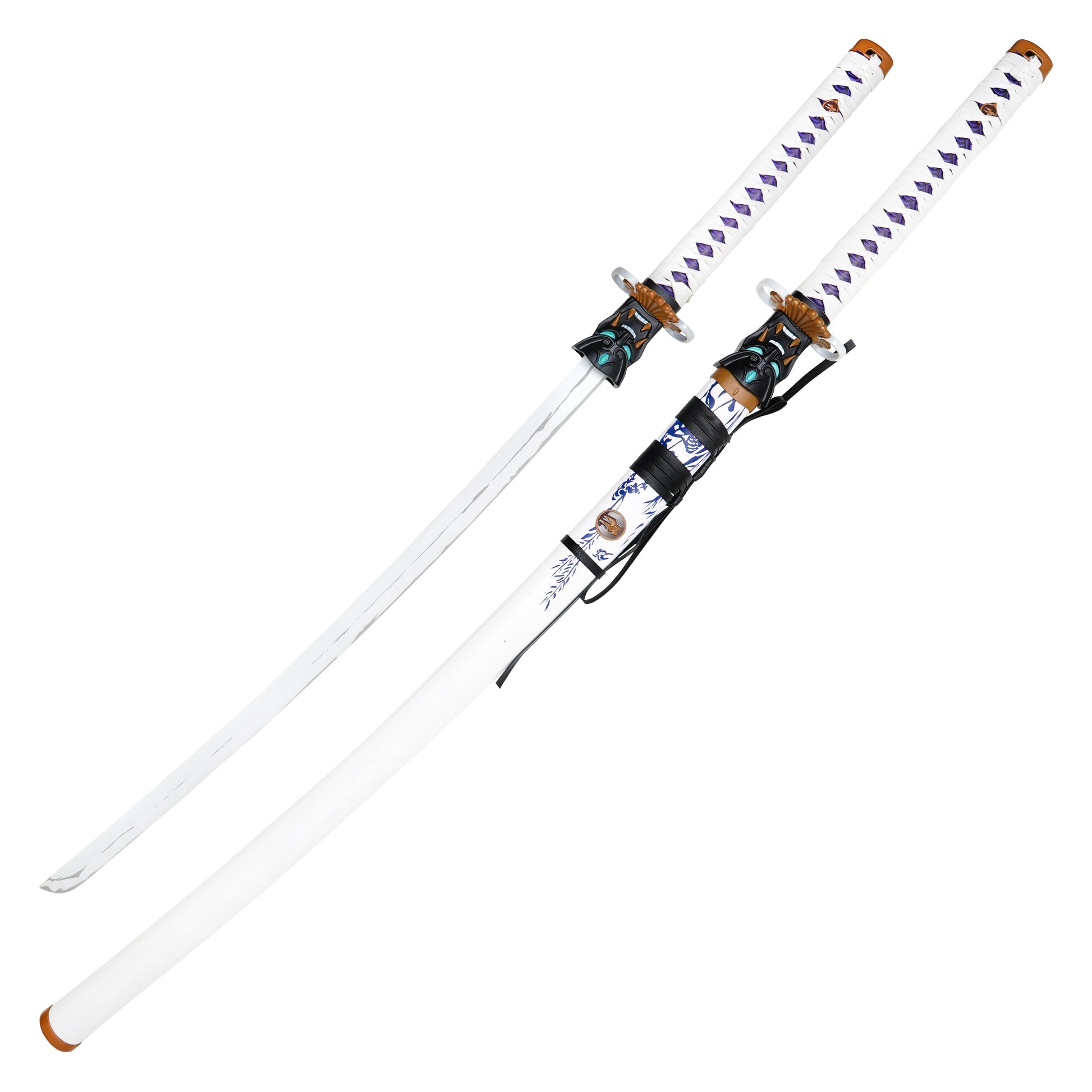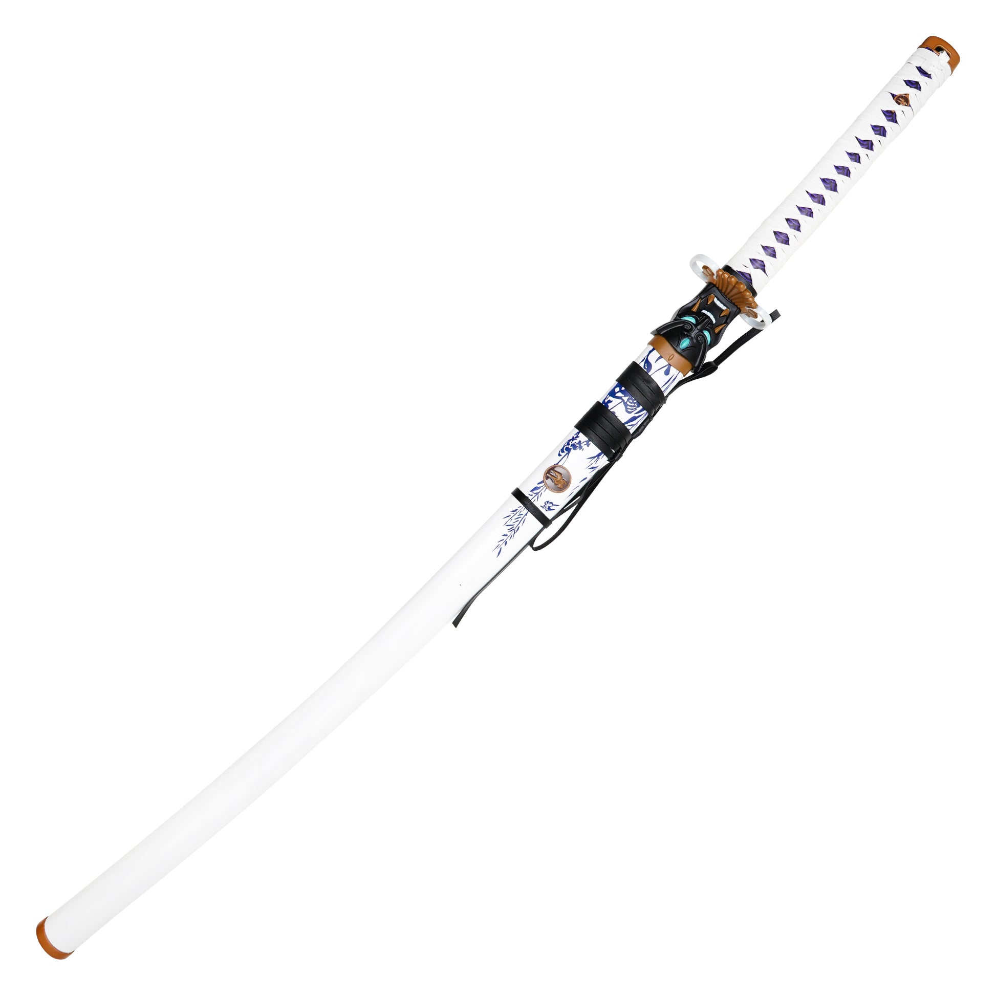 Master the art of battle with the Oni 2.0 Katana Sword, inspired by Valorant's formidable demon-themed weaponry. This striking replica is a true homage to the in-game design, featuring a sleek white steel blade, complemented by a white and black demon-styled handle that embodies the dark, mythical essence of the Oni. Perfect for cosplay or display, this sword is completed with an intricately decorated blue and white saya, making it the ultimate collectible for Valorant fans. Its durable steel construction ensures it’s ready to be the focal point of any collection or event.