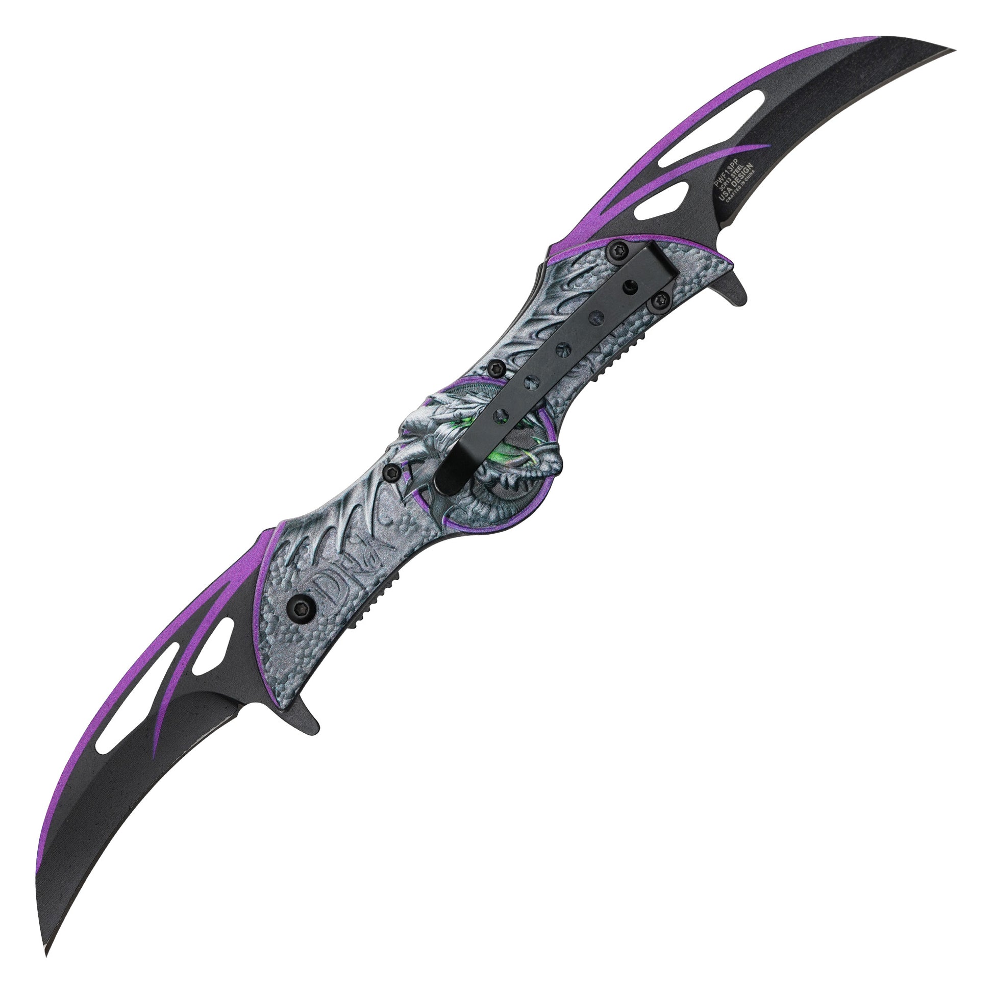 Wartech - 10.5" Dual Blade Purple Dragon | Spring Assisted Pocket Knife