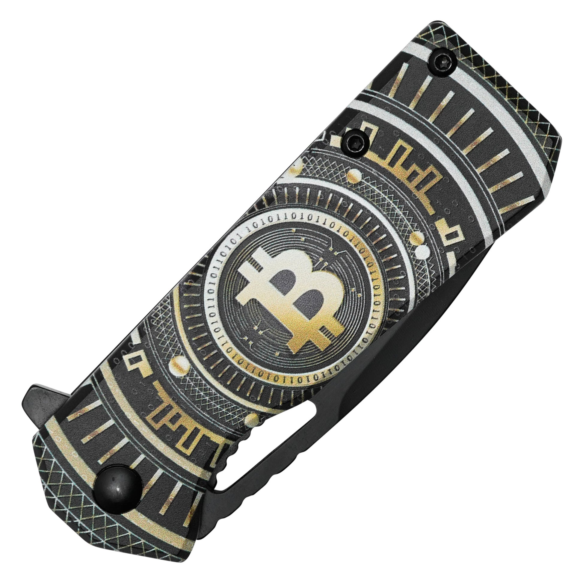 Unlock the future of everyday carry with the Black Bitcoin Spring Assisted Pocket Knife by Wartech. Compact yet bold, this 6.25" knife features a 2.75" black steel blade with a perforated thumb slot for smooth, rapid deployment. The 3.5" handle is styled with a sleek Bitcoin print that pays homage to the digital currency revolution—perfect for crypto enthusiasts and modern collectors. With a reliable spring assisted mechanism and sturdy belt clip, this blade blends high-tech vibes with real-world function, making it an ideal addition to your EDC lineup or crypto-themed gear collection.