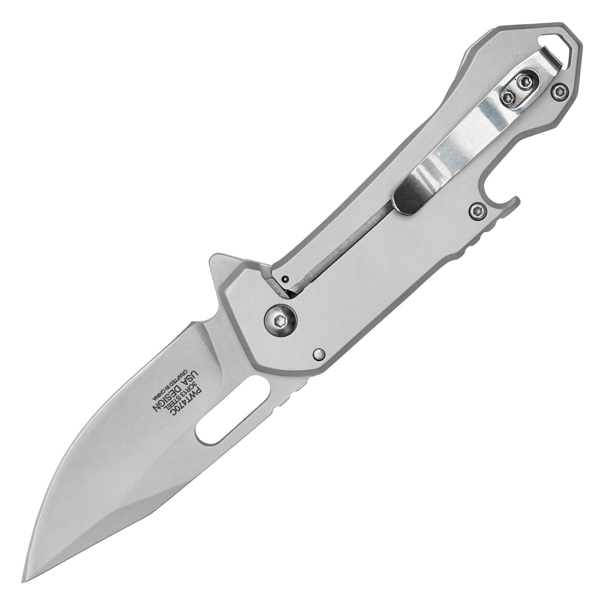 - Blade Length: 2.75" Perforated Silver Steel Blade
