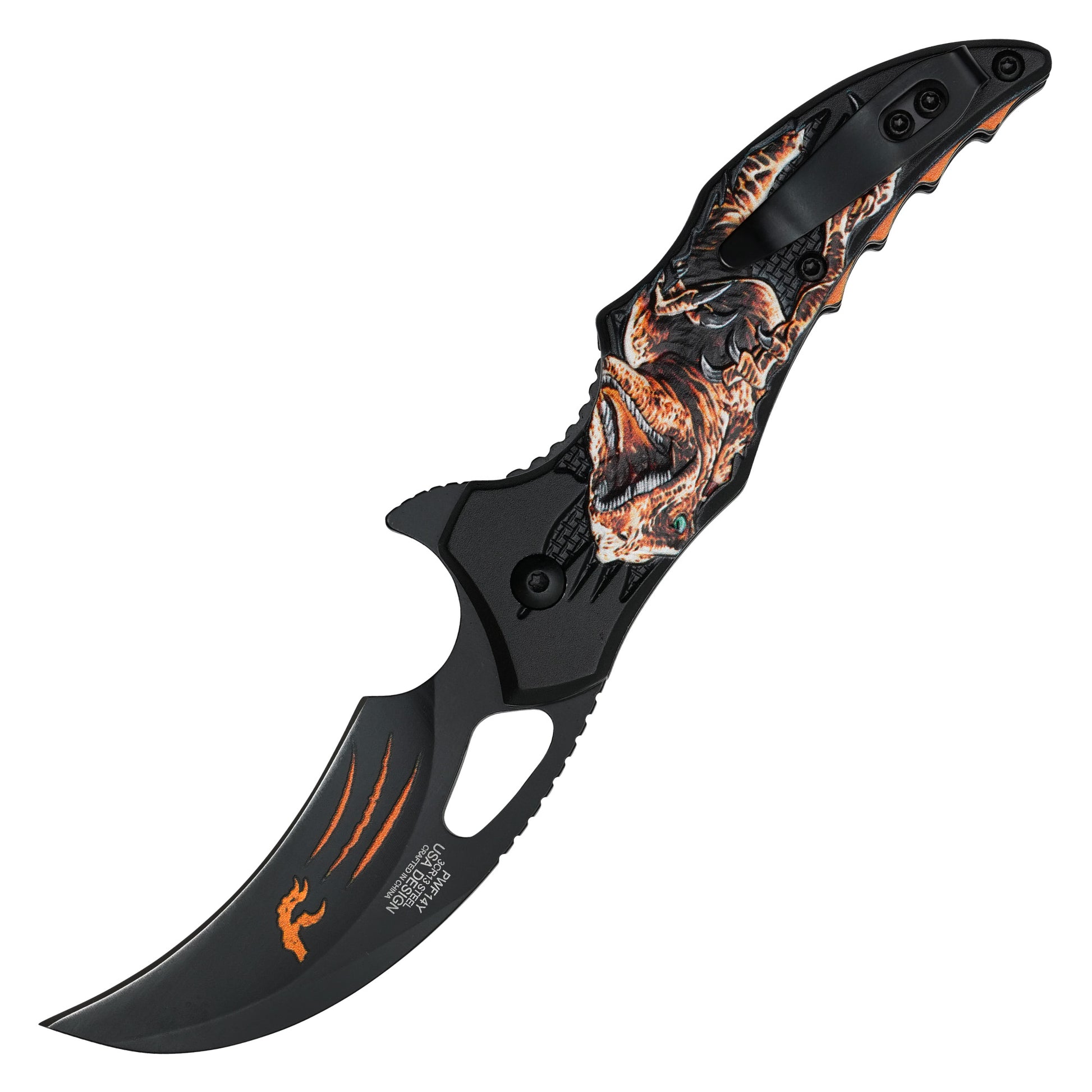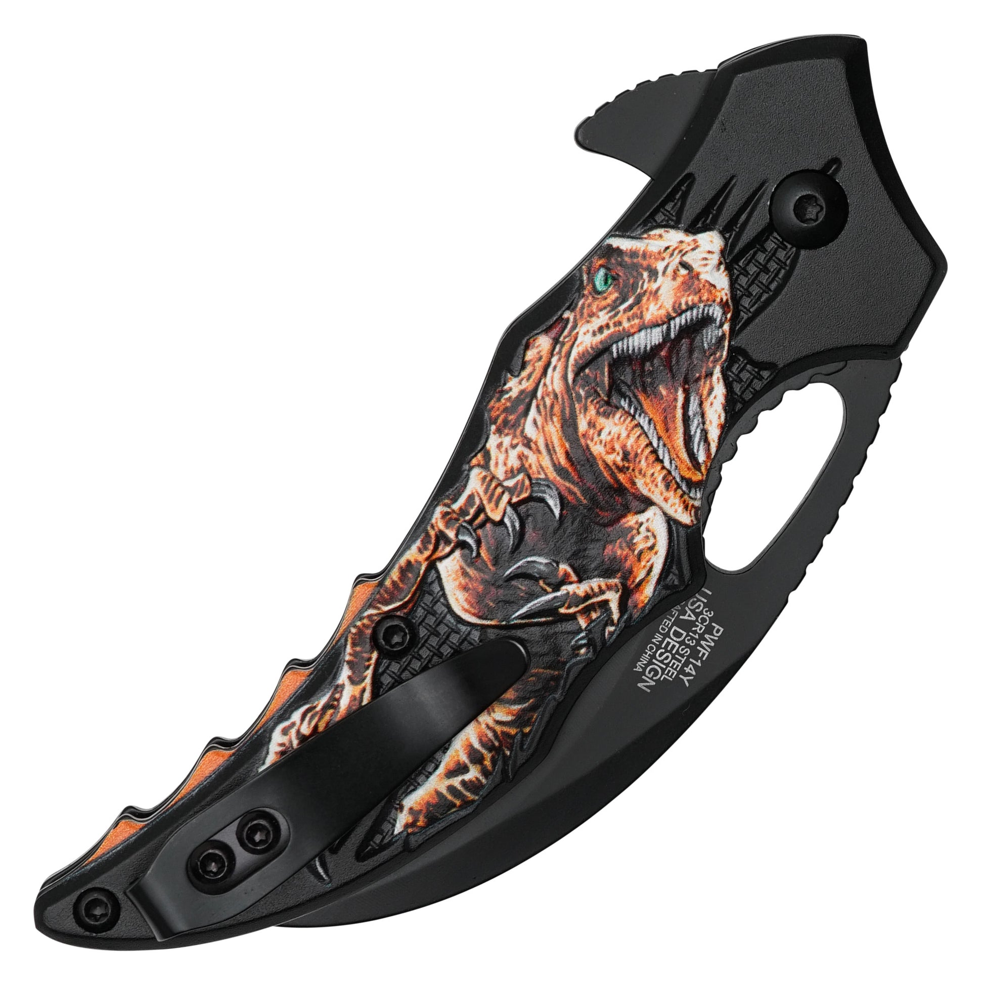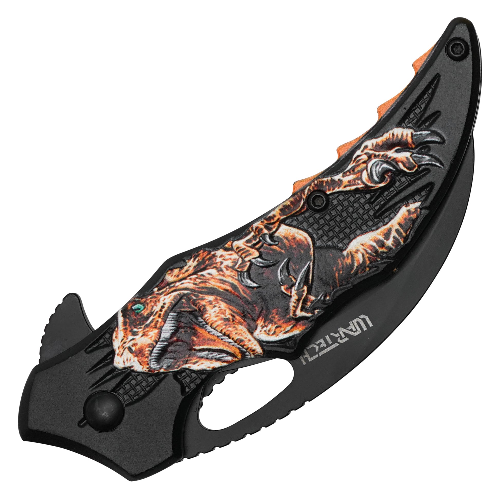 Wartech - 7" Orange T-Rex Dinosaur Knife | Spring Assisted Pocket Knife