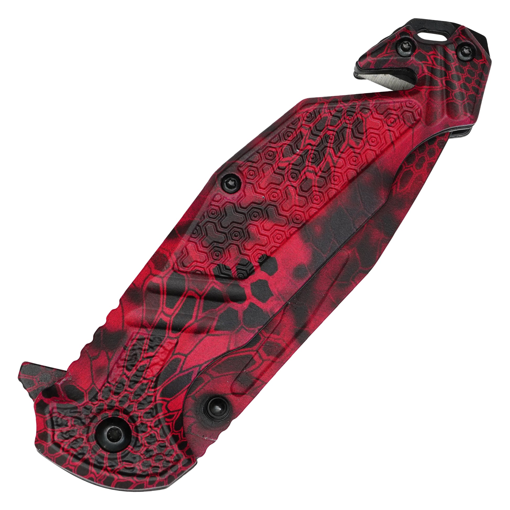 - Handle Length: 4.75" Red Morpho Camo Print Handle
