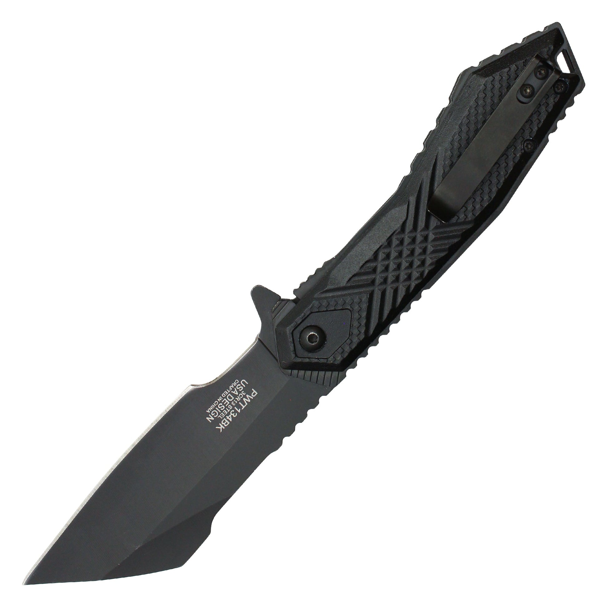 Wartech - 8.25" Tactical Black Textured Pocket Knife