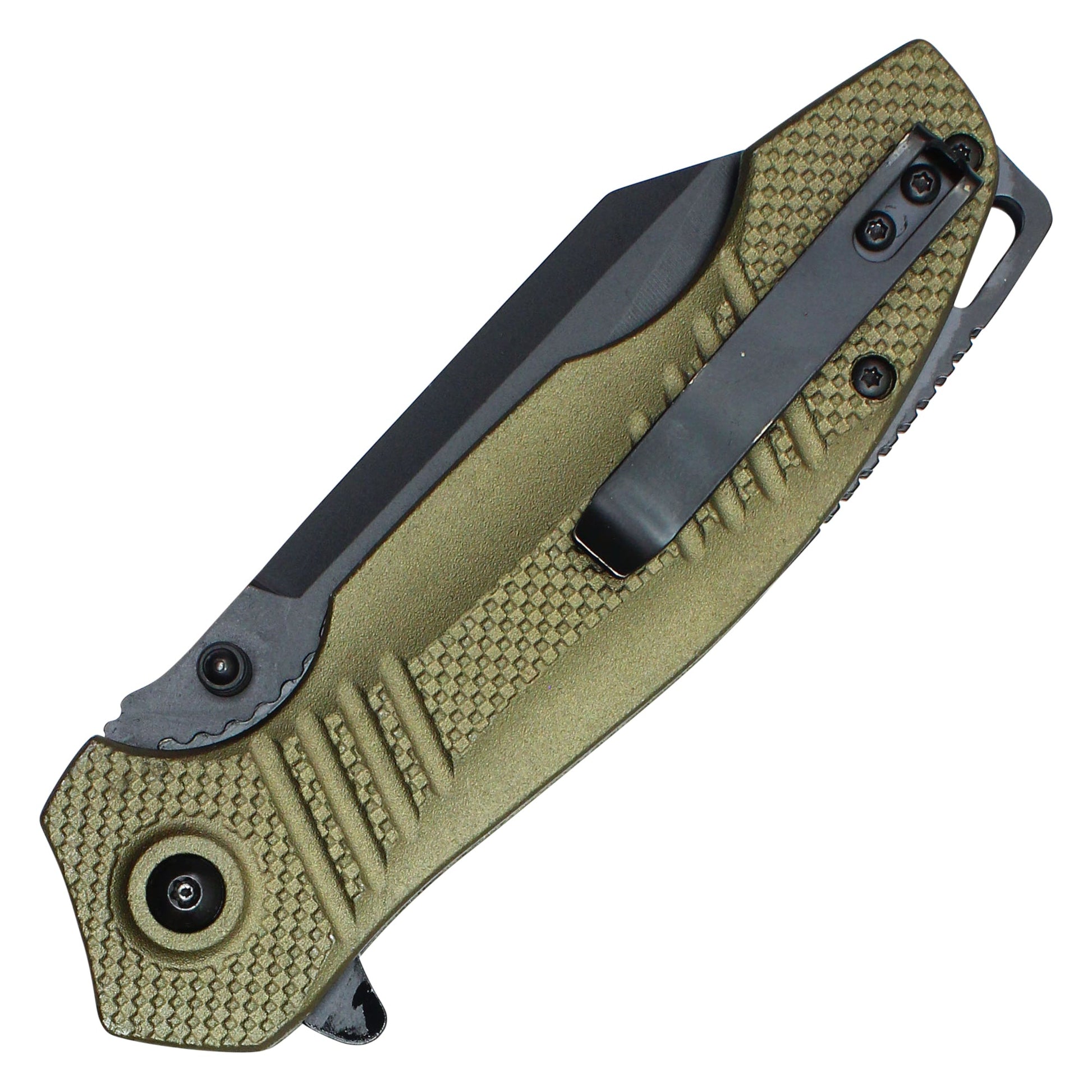The 4.5" tactical desert green textured handle is not just visually striking but provides a steadfast grip for enhanced control in critical situations. Equipped with a reliable belt clip and lanyard hole, this knife ensures quick accessibility and secure carry. Choose the Wartech Tactical Green Pocket Knife for unmatched performance and a distinctive tactical edge.