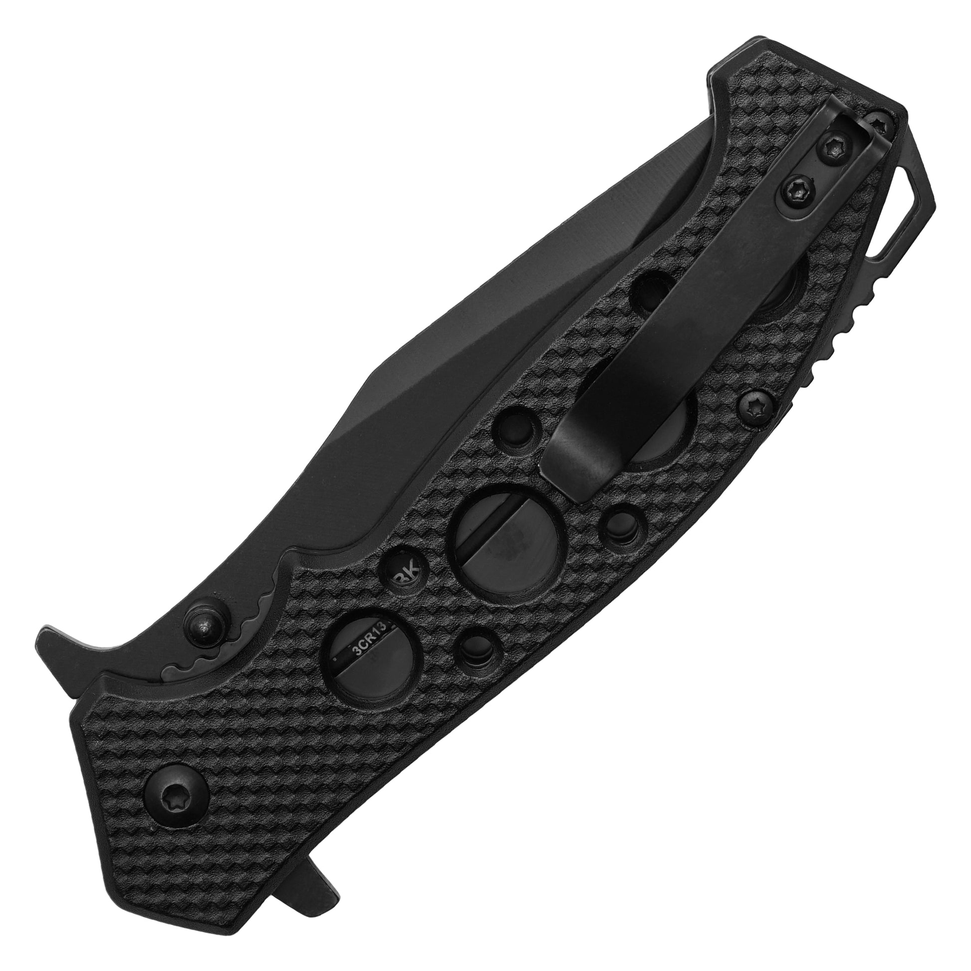 - Blade Length: 3.5" Serrated Black Steel Blade
