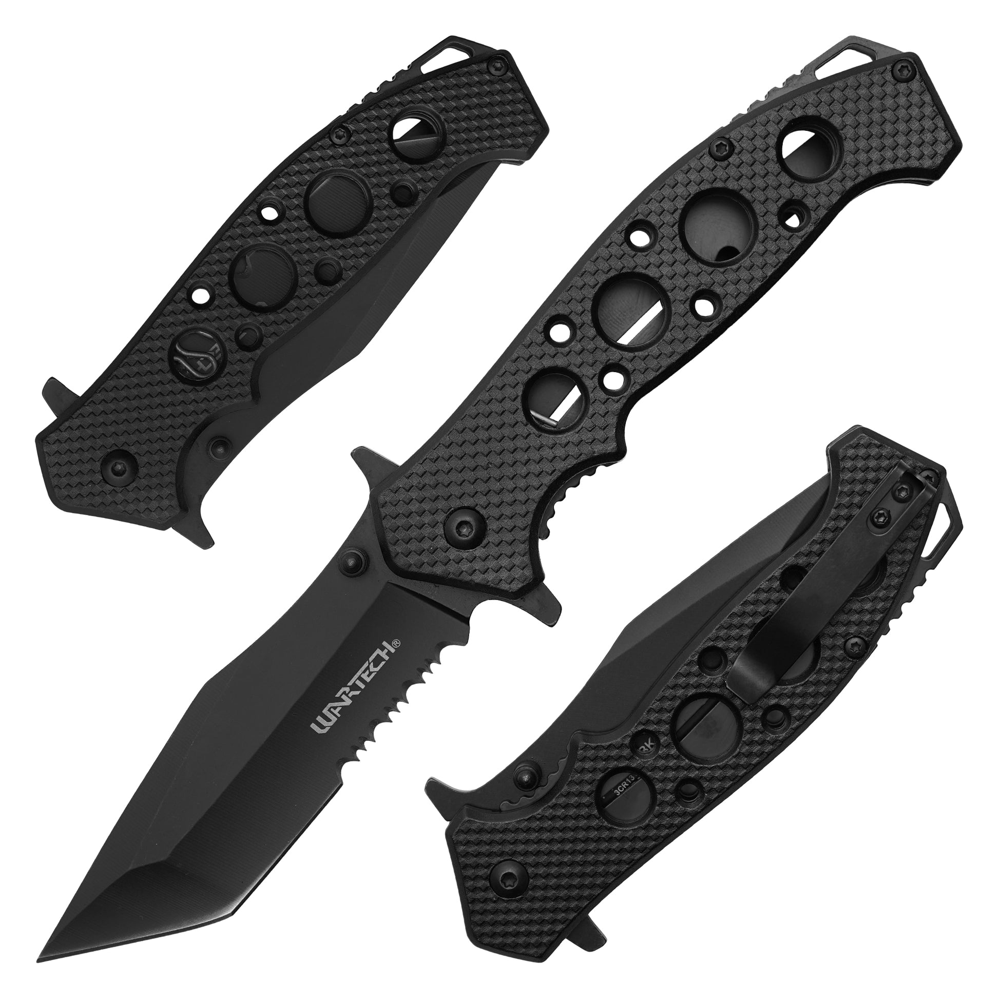 Wartech - 8.25" Textured Tactical Black | Spring Assisted Pocket Knife
