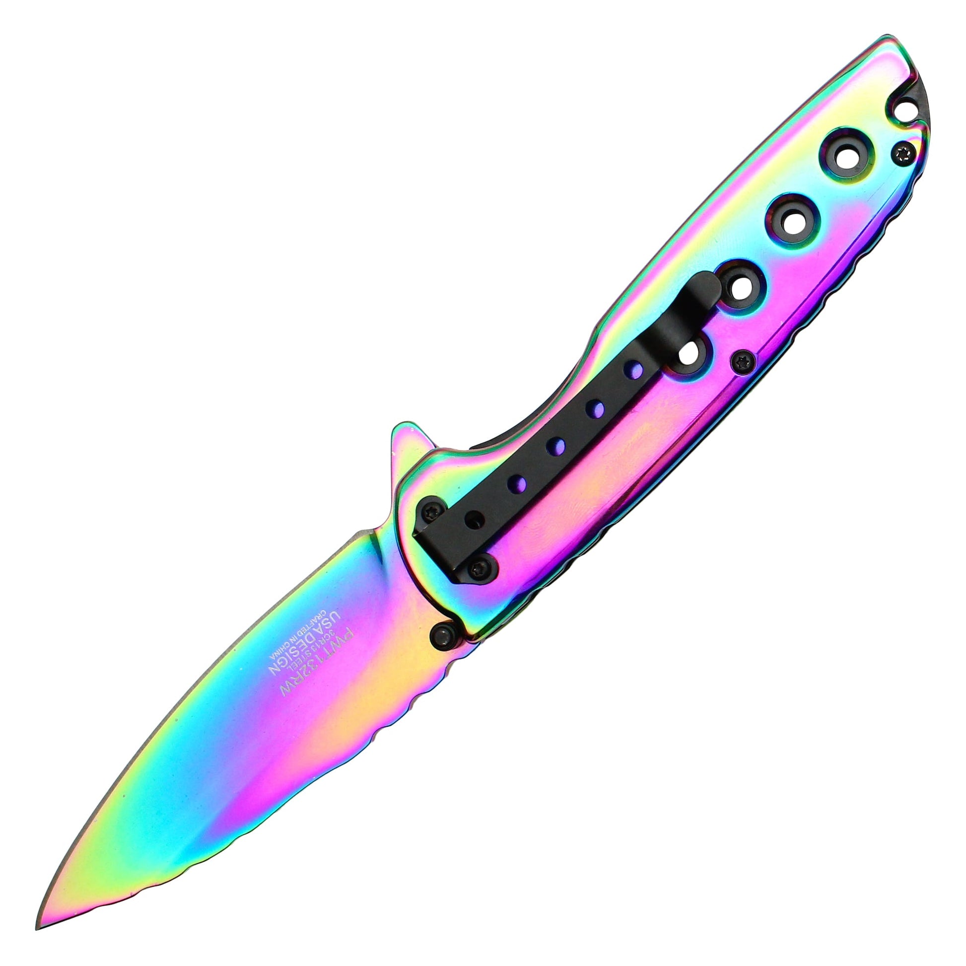 Wartech - 8.5" Rainbow Perforated Pocket Knife