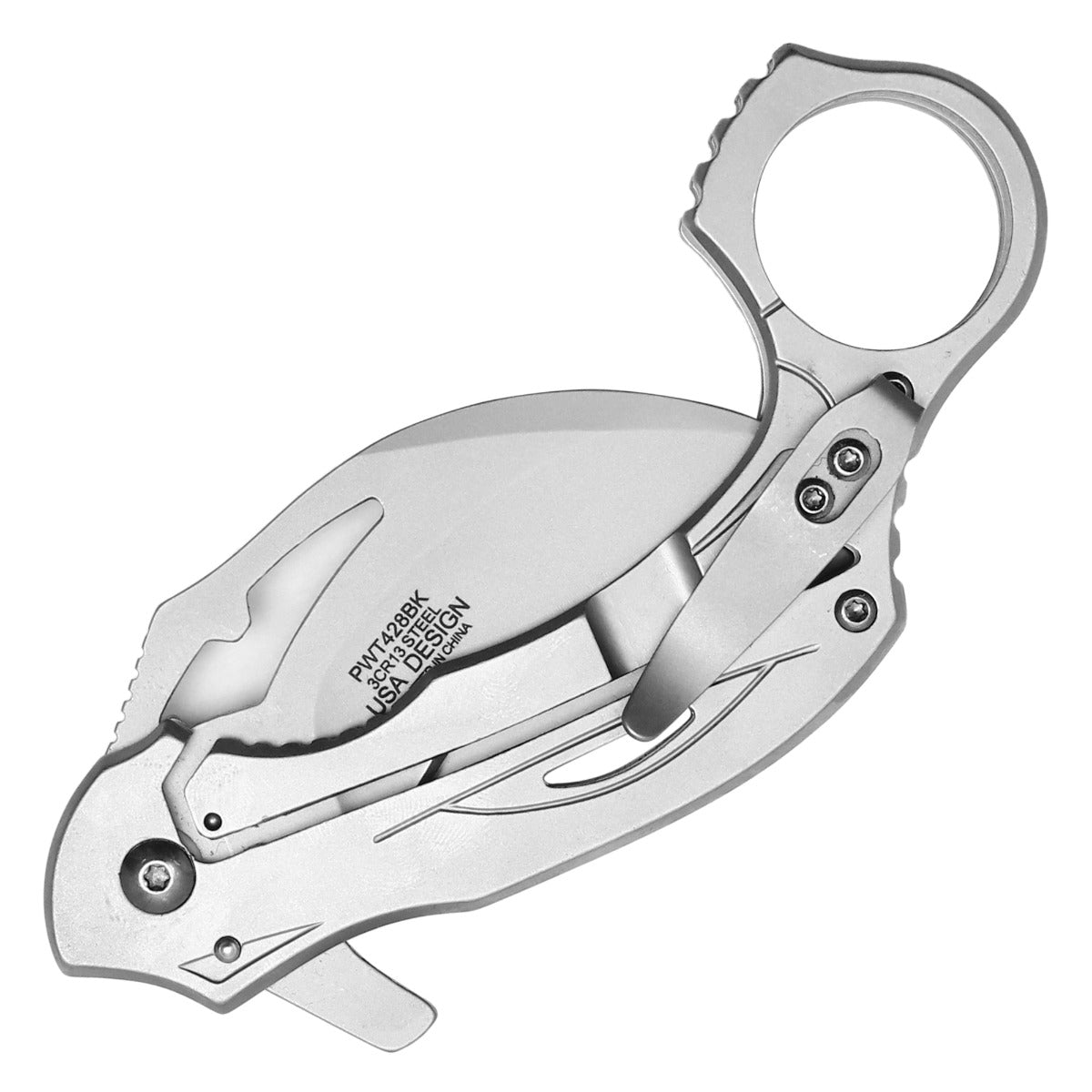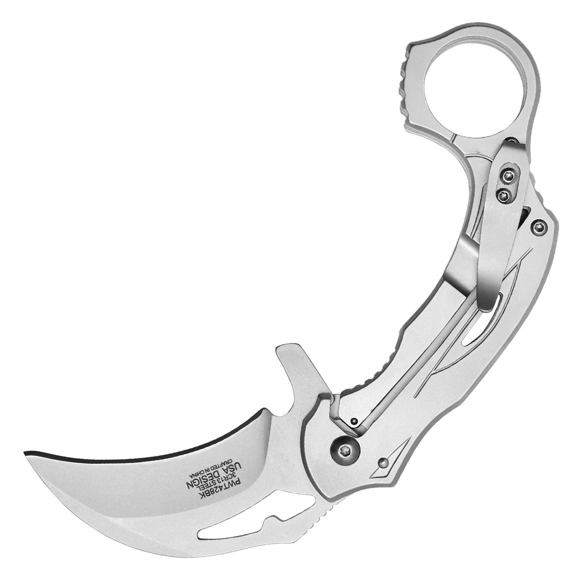 The Wartech 6" Black Pocket Karambit is a compact and efficient tool designed for tactical, self-defense, and everyday carry use. Featuring a 2.5" 3CR13 steel blade, this karambit offers sharpness and durability, ensuring reliable performance when you need it most. The 4.5" black aluminum handle provides a secure and comfortable grip, while the built-in belt clip and ring hole allow for easy carry and quick access. With its spring-assisted mechanism, this knife deploys quickly for immediate use, making it an ideal choice for those who value both style and functionality in their tools.